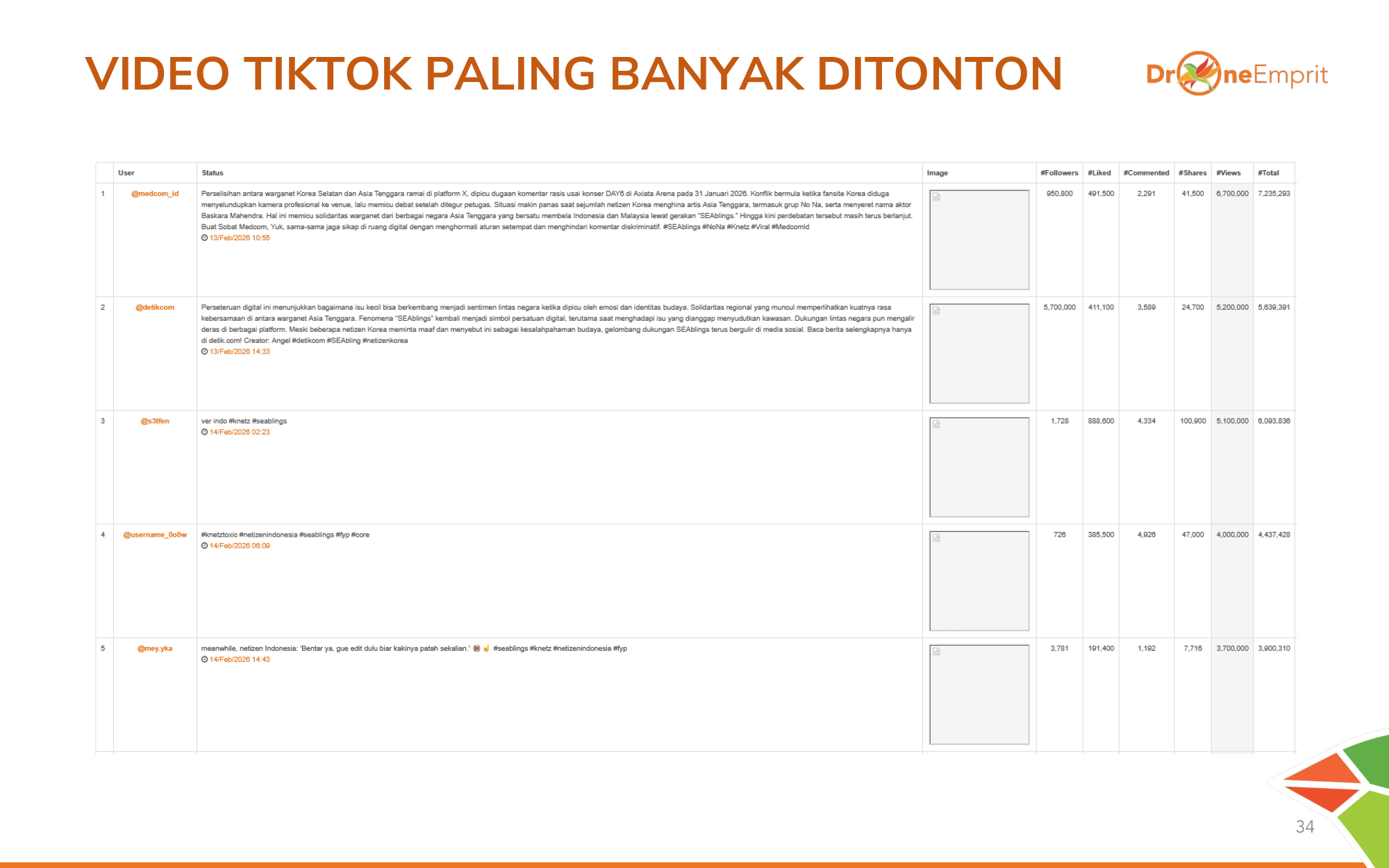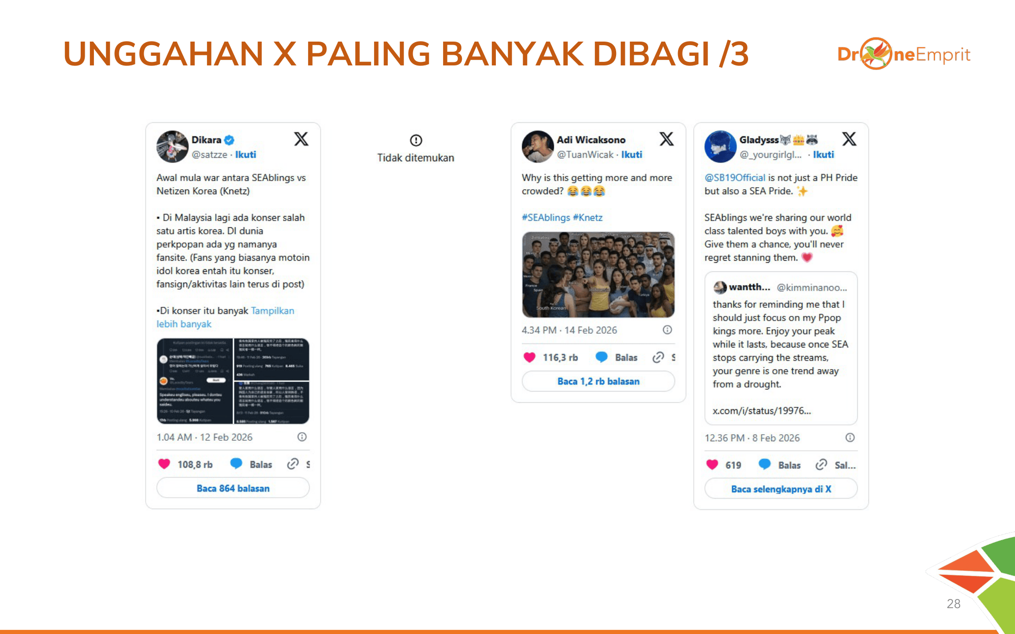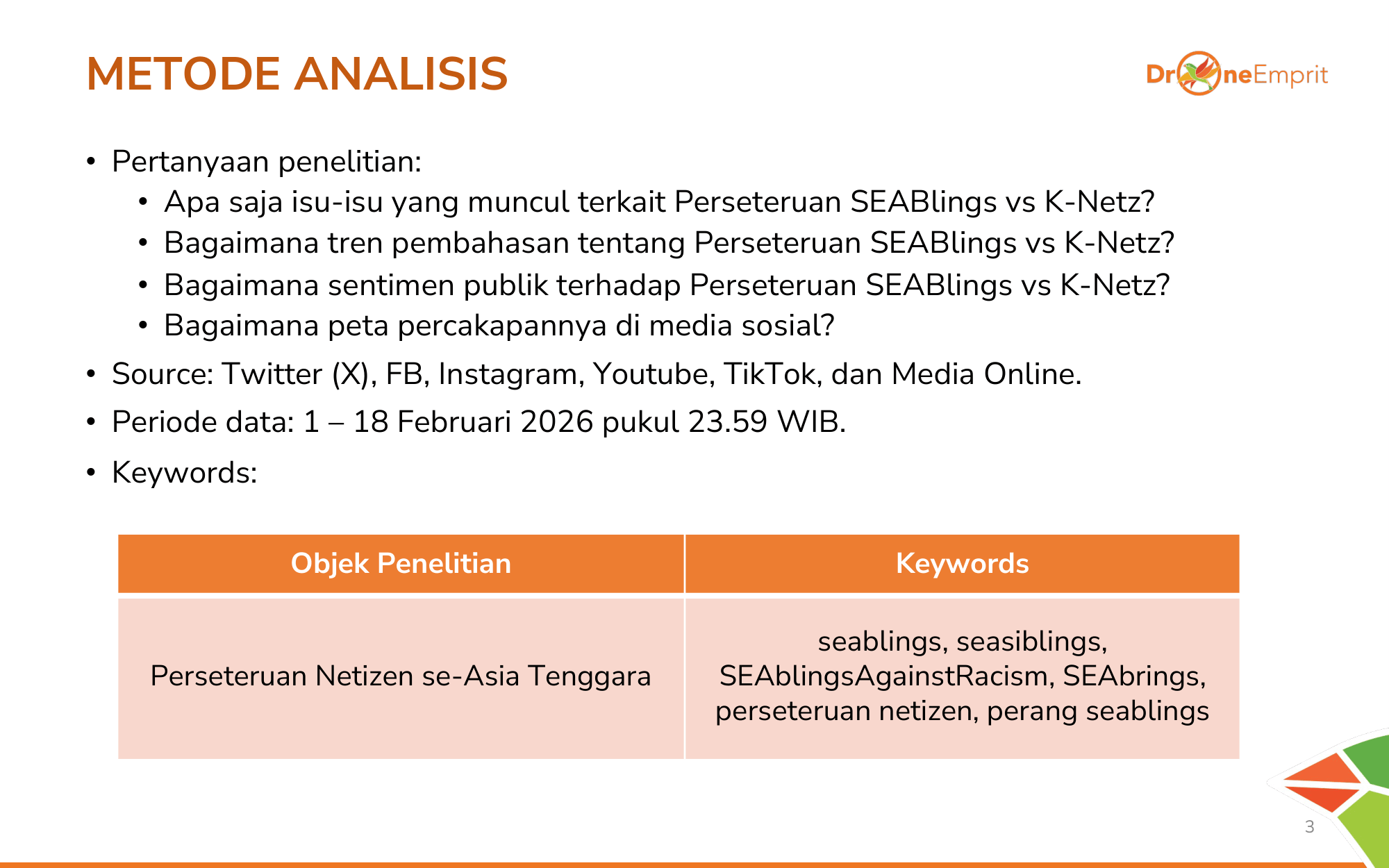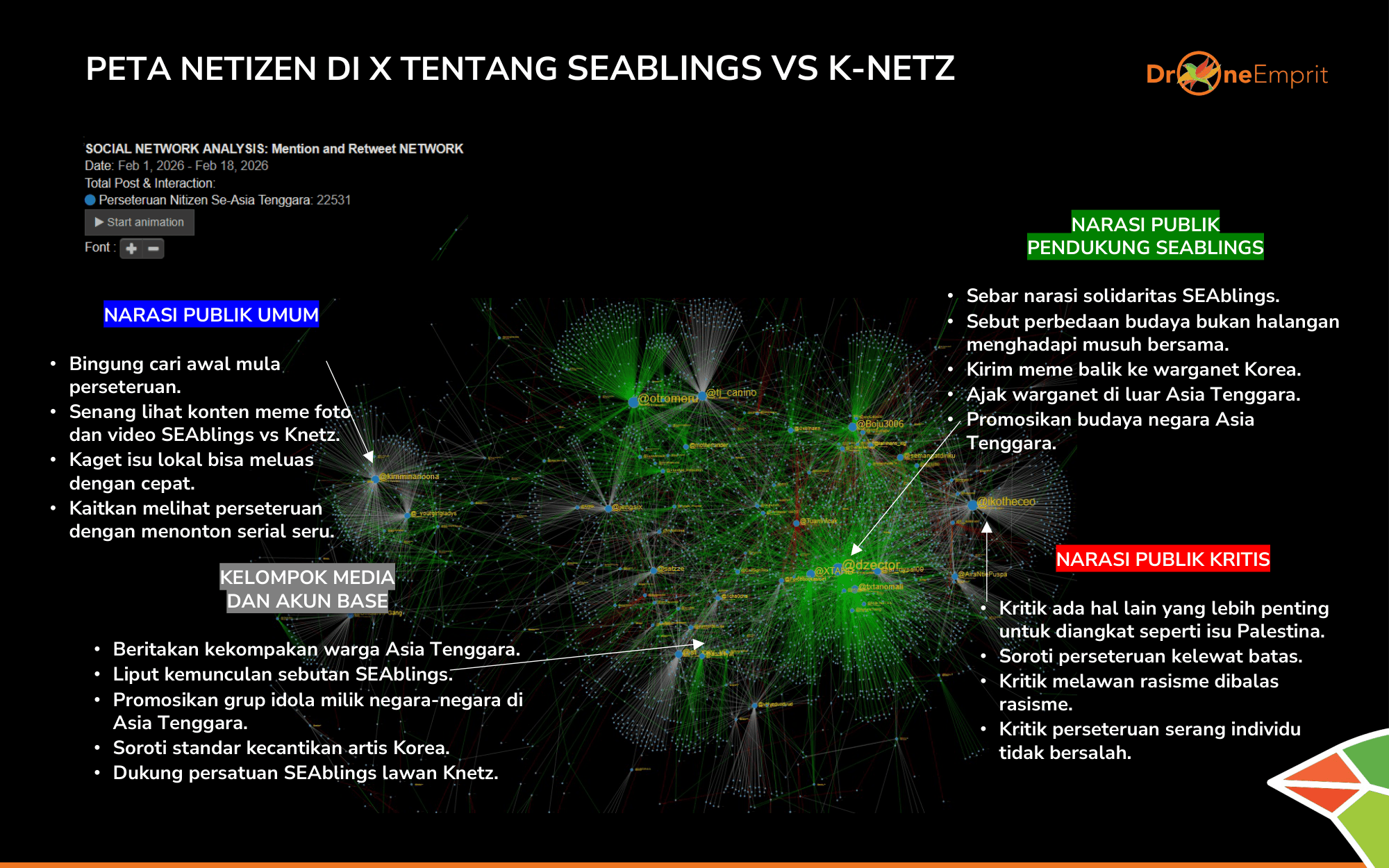 Kami memantau data dari X, FB, IG, YouTube, TikTok, dan Media Online periode 1 – 18 Feb 2026. Isunya Perseteruan Netizen se-Asia Tenggara.
