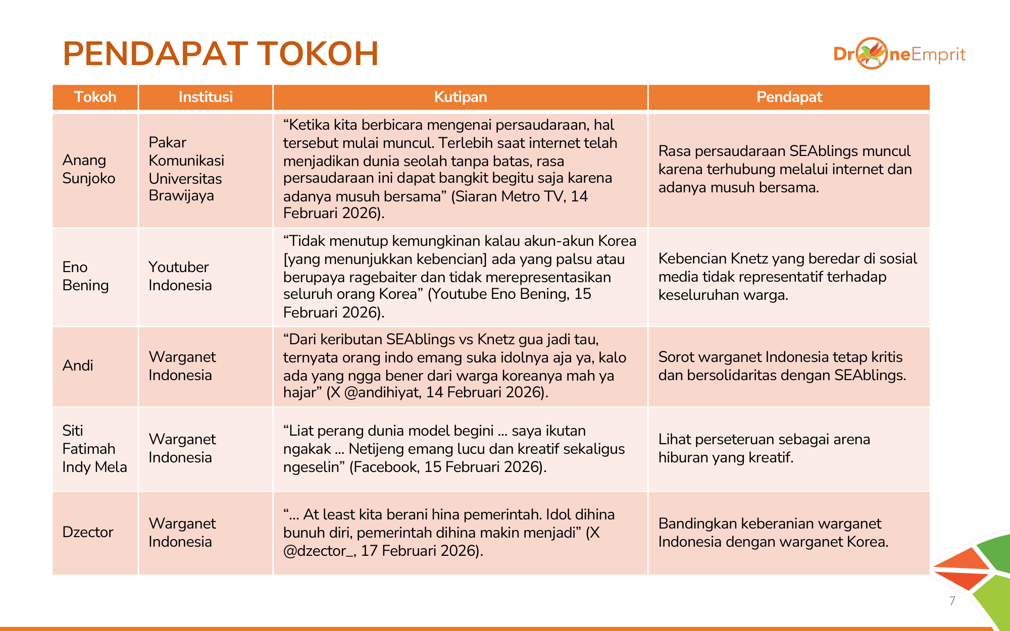 Pakar Komunikasi UB) menyebut persaudaraan SEAblings bangkit karena adanya musuh bersama di internet yang tanpa batas. Sementara itu, akun andihiyat menyorot betapa kritisnya fans Indo meski tetap suka idolanya.