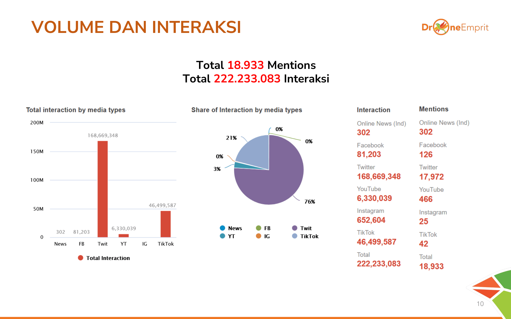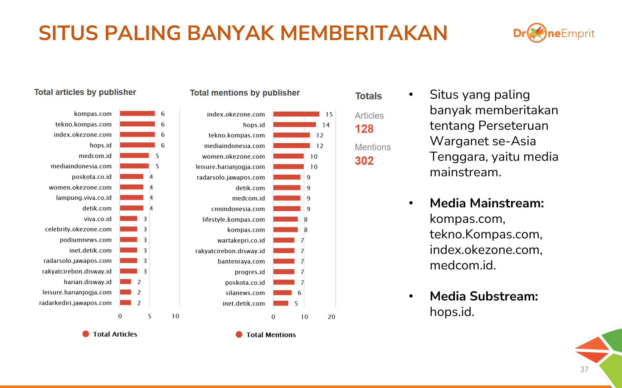 Total ada lebih dari 18 ribu sebutan di medsos. Media Online mayoritas netral (80,5%), tapi warga Medsos justru lebih positif (51,1%) karena kuatnya dukungan terhadap solidaritas regional antar-negara ASEAN.