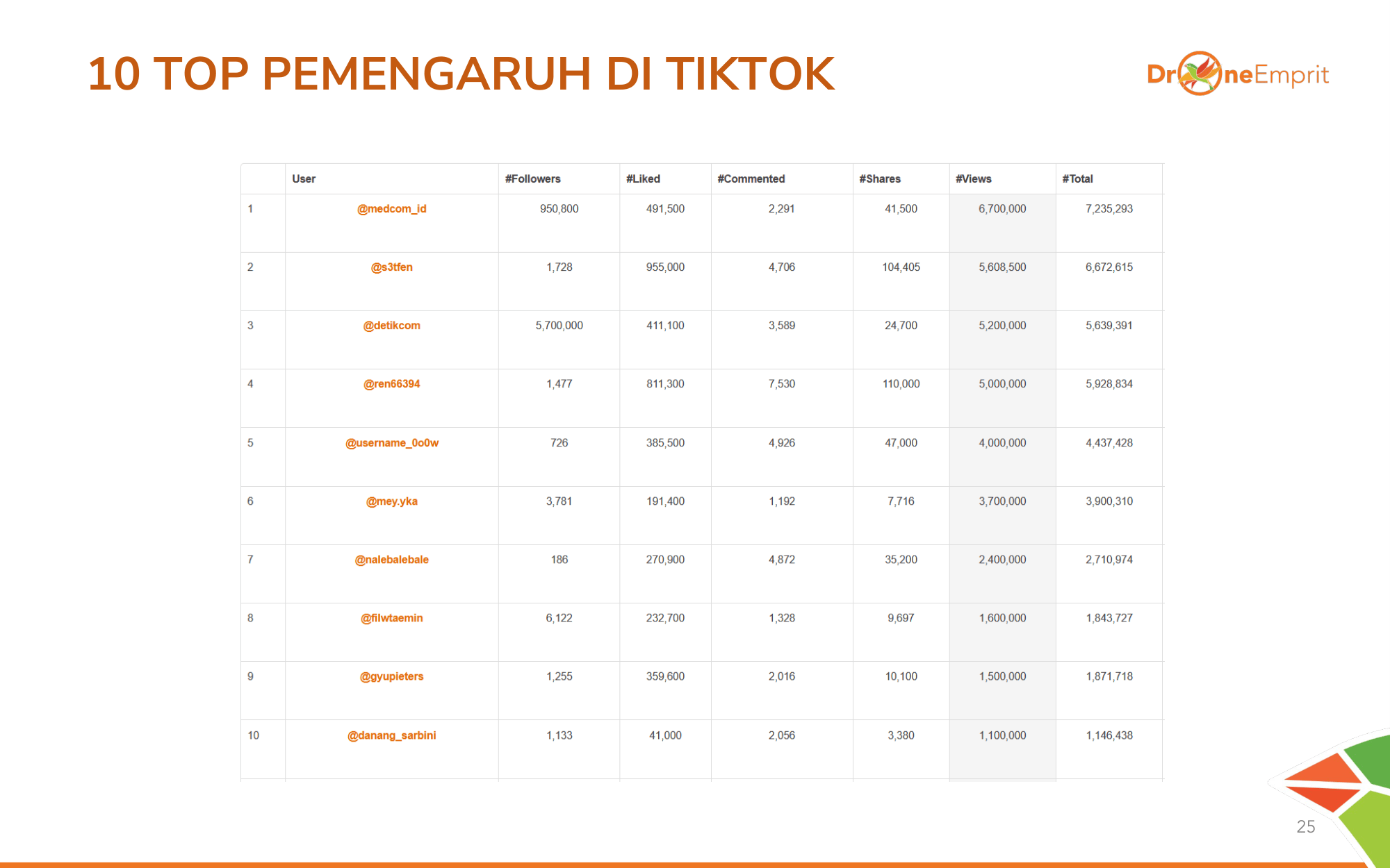 Medom_id dan s3tfen sangat kuat di TikTok, disusul detikcom dan ren66394. Narasi pendek dan padat sukses bikin SEAblings dapat dukungan di sana.