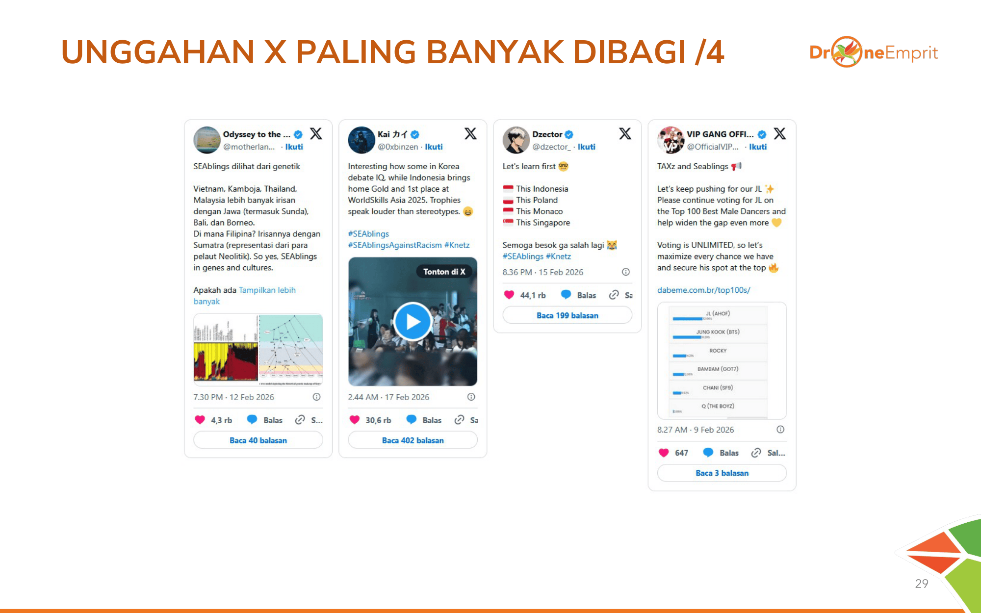 Percakapan meningkat tajam di X, dipicu oleh konten rasis yang viral. Akhirnya, dari forum fans jadi perseteruan digital lintas negara. Identitas regional muncul sebagai respons defensif sekaligus ofensif.