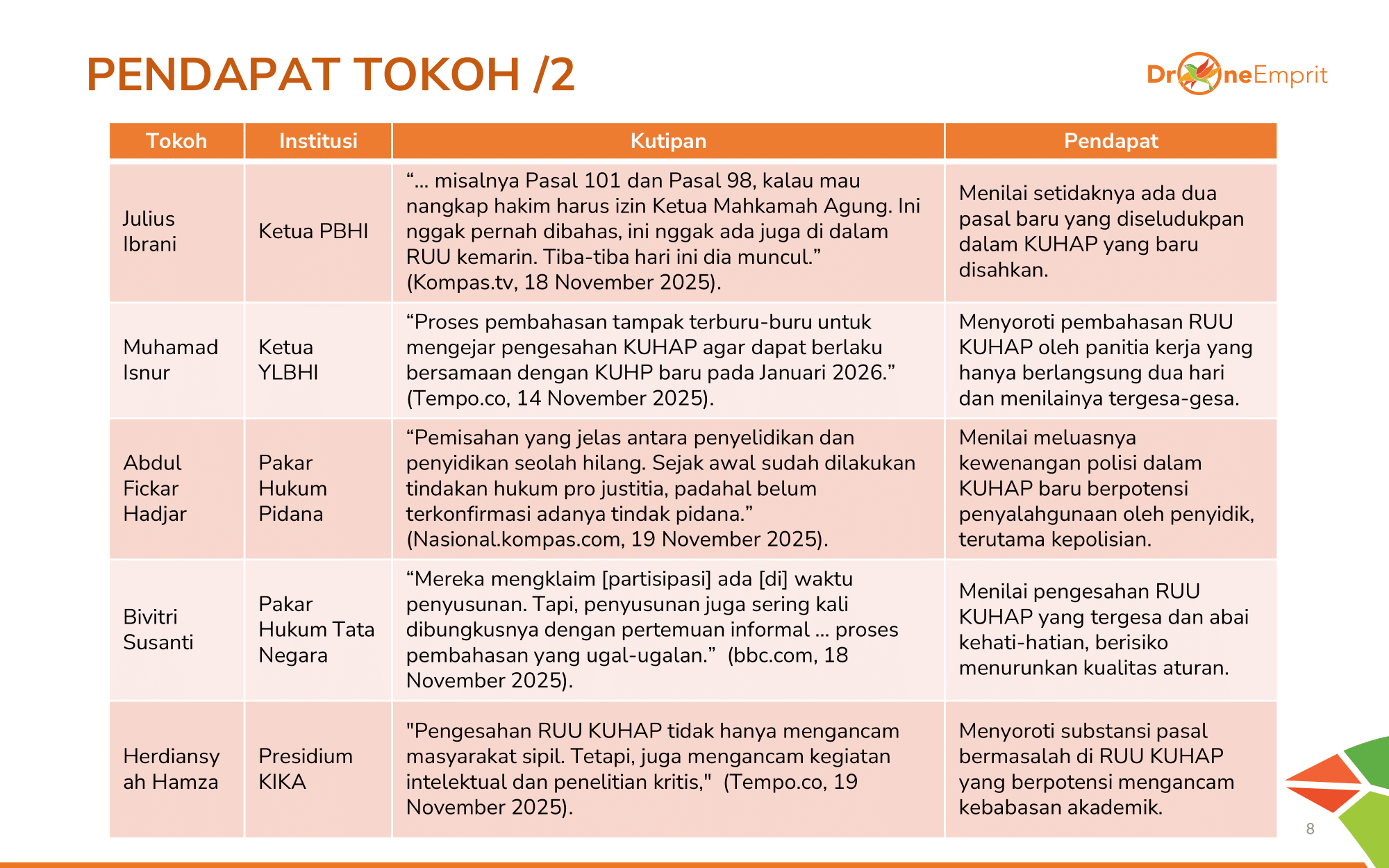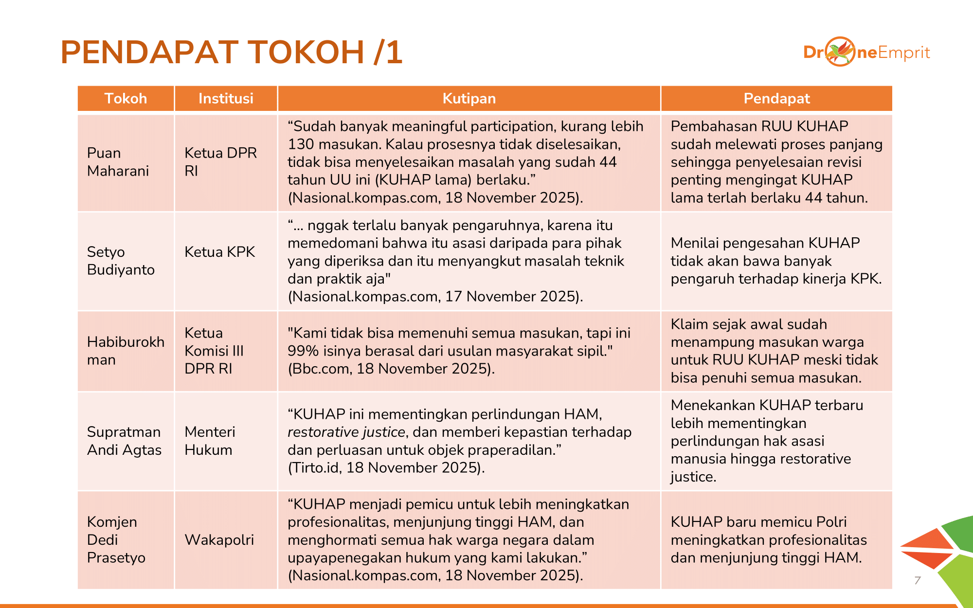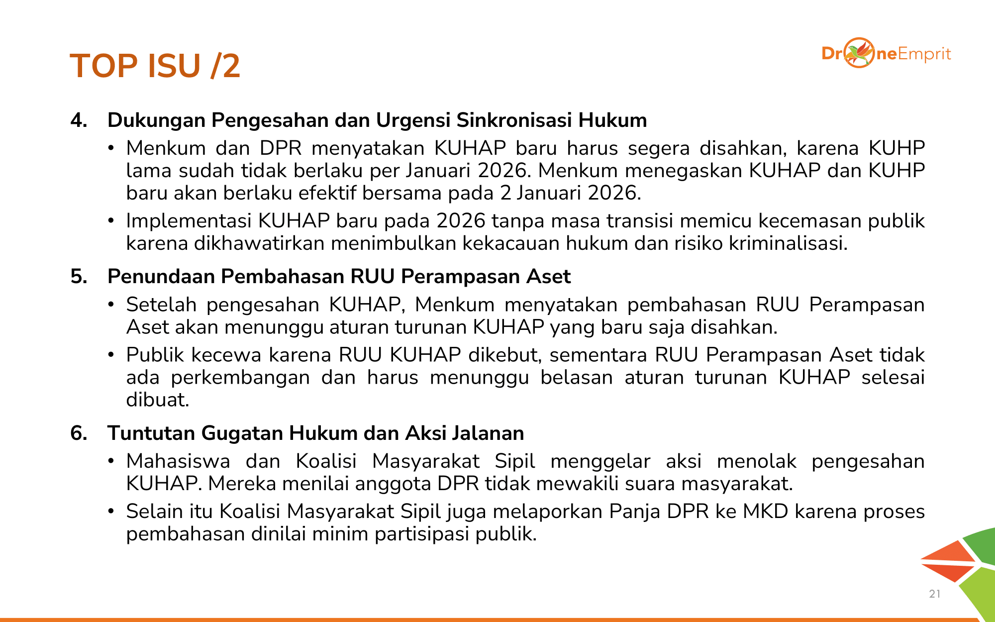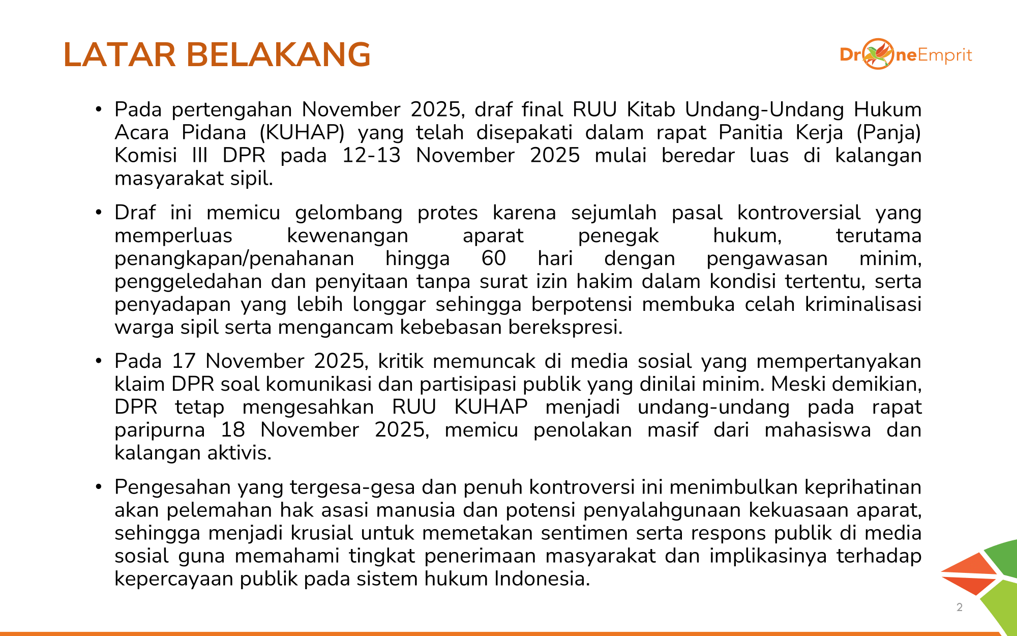 1️) Pengesahan tergesa KUHAP dinilai ancaman bagi hak sipil, memicu tagar #SemuaBisaKena & sentimen negatif.