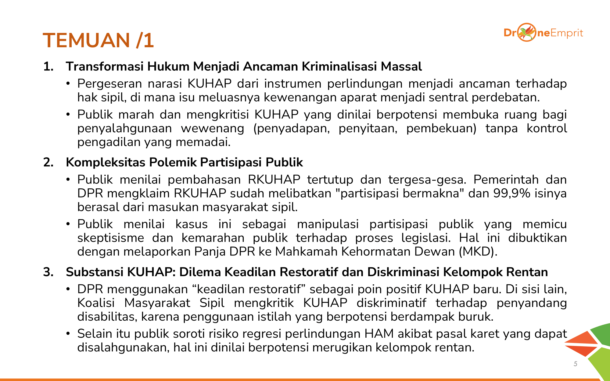 Apa saja temuan krusial terkait substansi KUHAP & proses legislasi?