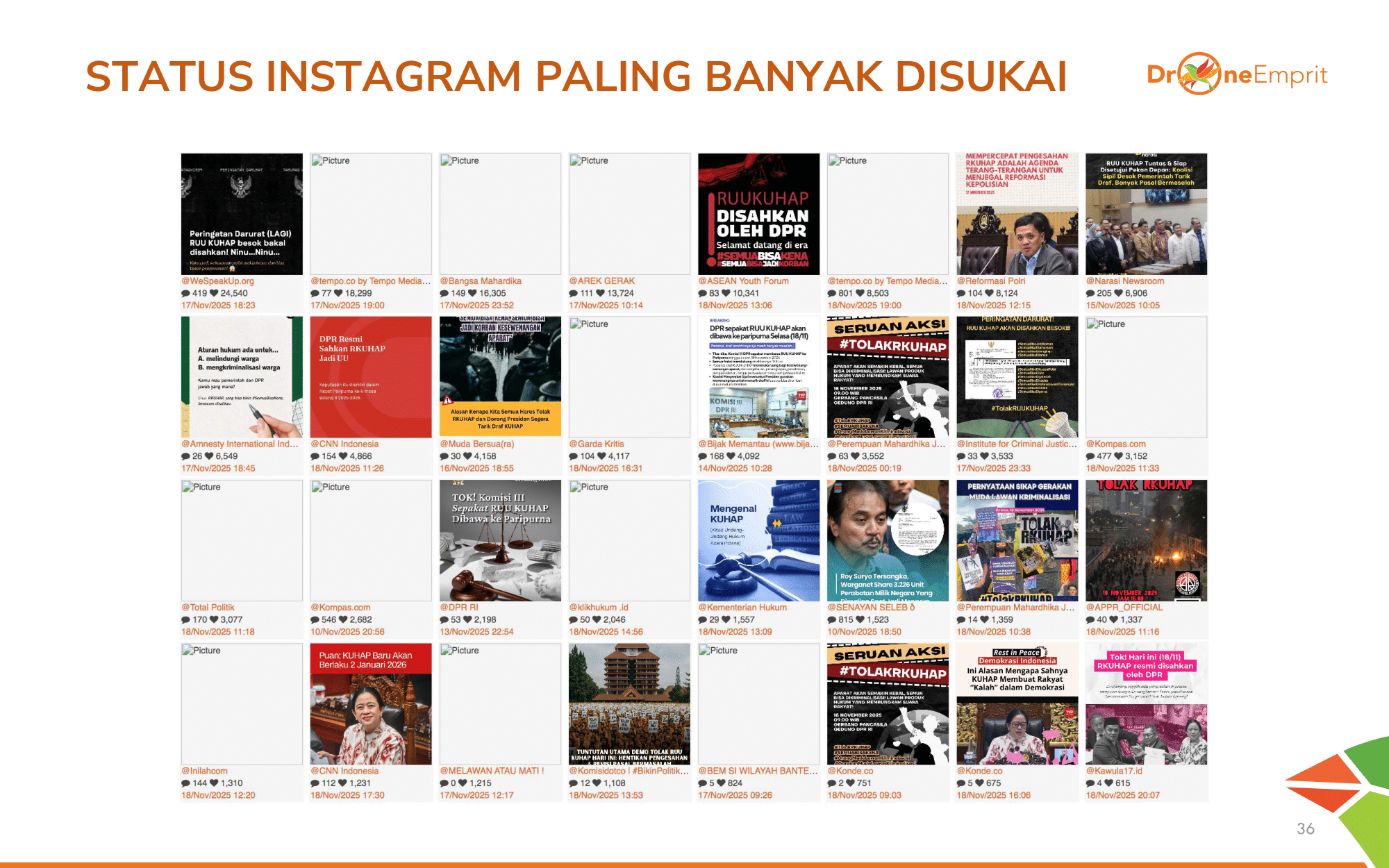 Instagram didominasi akun media & akun advokasi jadi penyuara utama kritik terhadap proses pengesahan KUHAP.