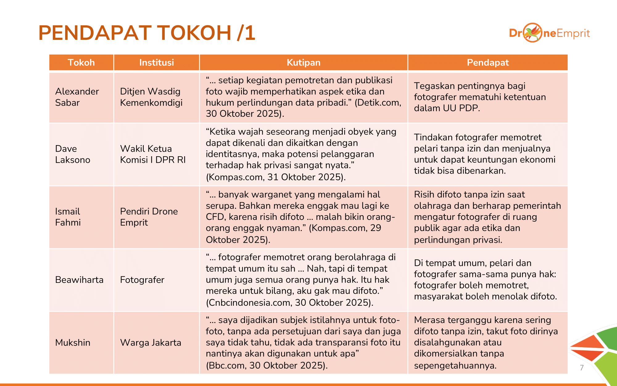 Komdigi & DPR tegaskan ini langgar UU PDP. Ismail Fahmi (tokoh publik) merasa "risih". Namun, fotografer (Beawiharta) klaim punya "hak" di ruang publik.
