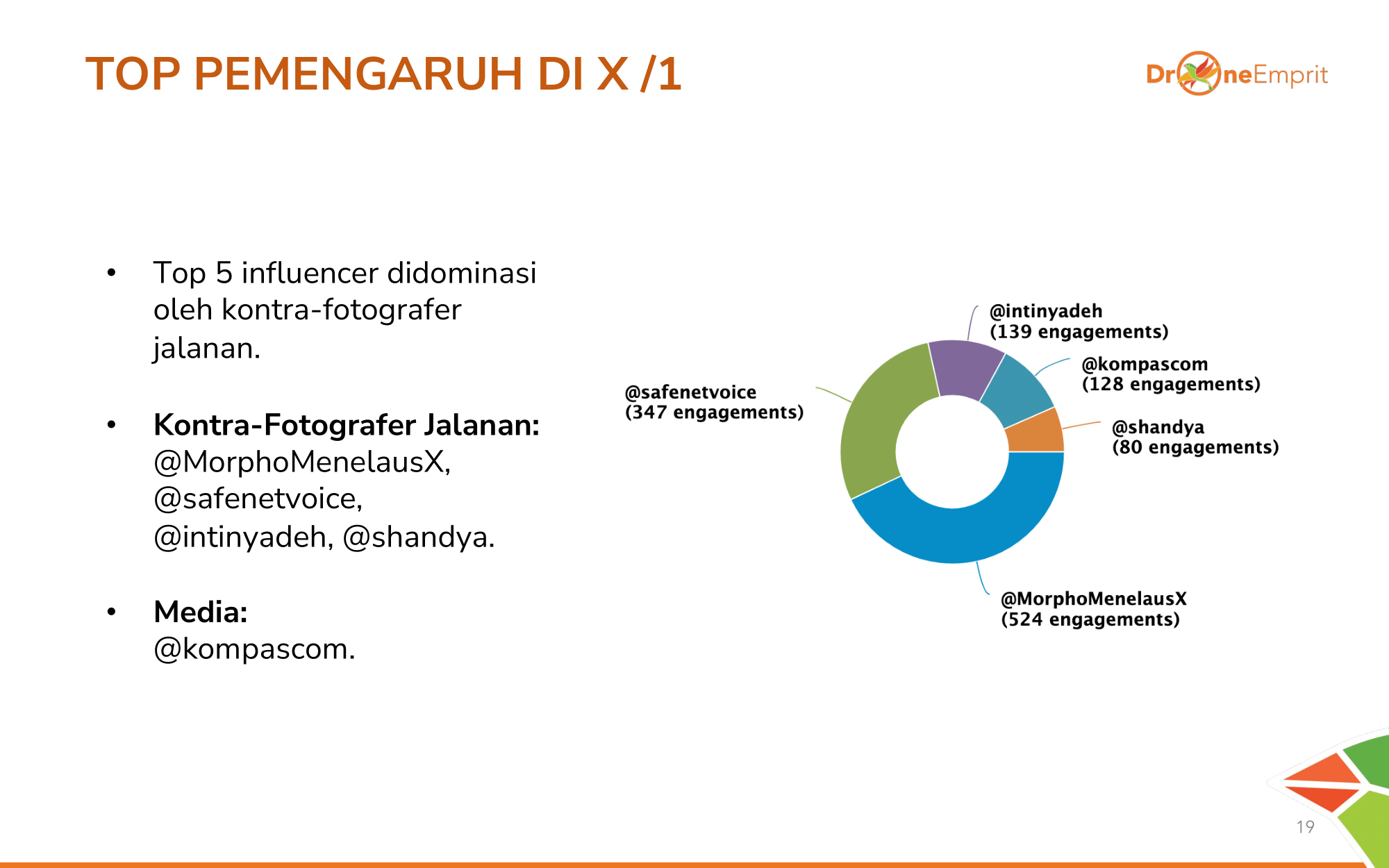 5 influencer teratas di X didominasi oleh klaster Kontra. Narasi negatif dari @MorphoMenelausX, @safenetvoice, @intinyadeh, & @shandya terbukti paling berpengaruh.