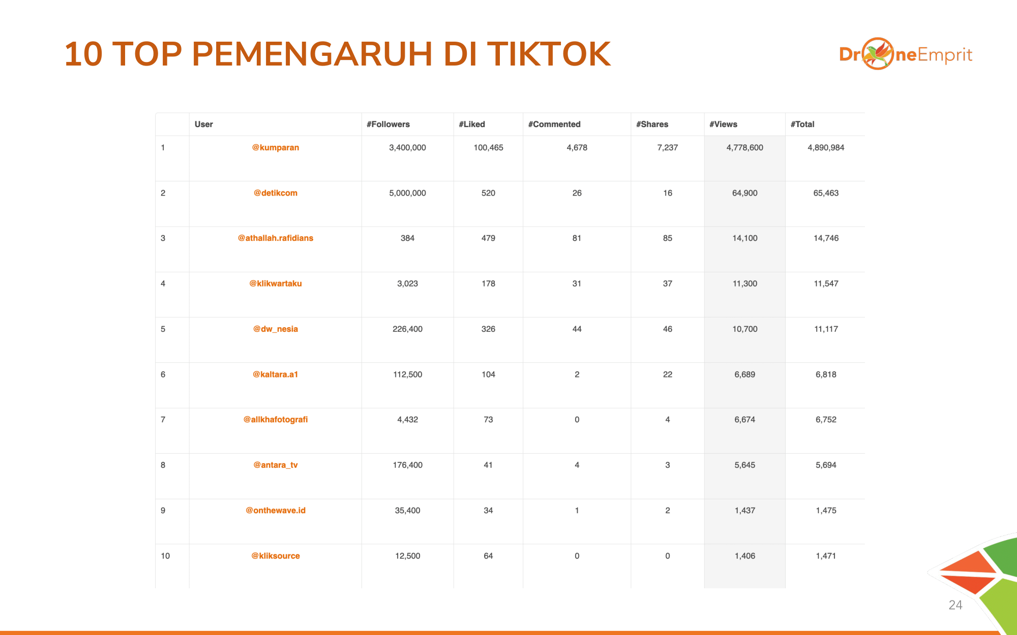 TikTok didominasi @kumparan (total 4.7 Juta views). Video teratas (3,1 Juta views) mengangkat kisah "risih" & "menyeramkan" @ismailfahmi, efektif membentuk sentimen negatif.