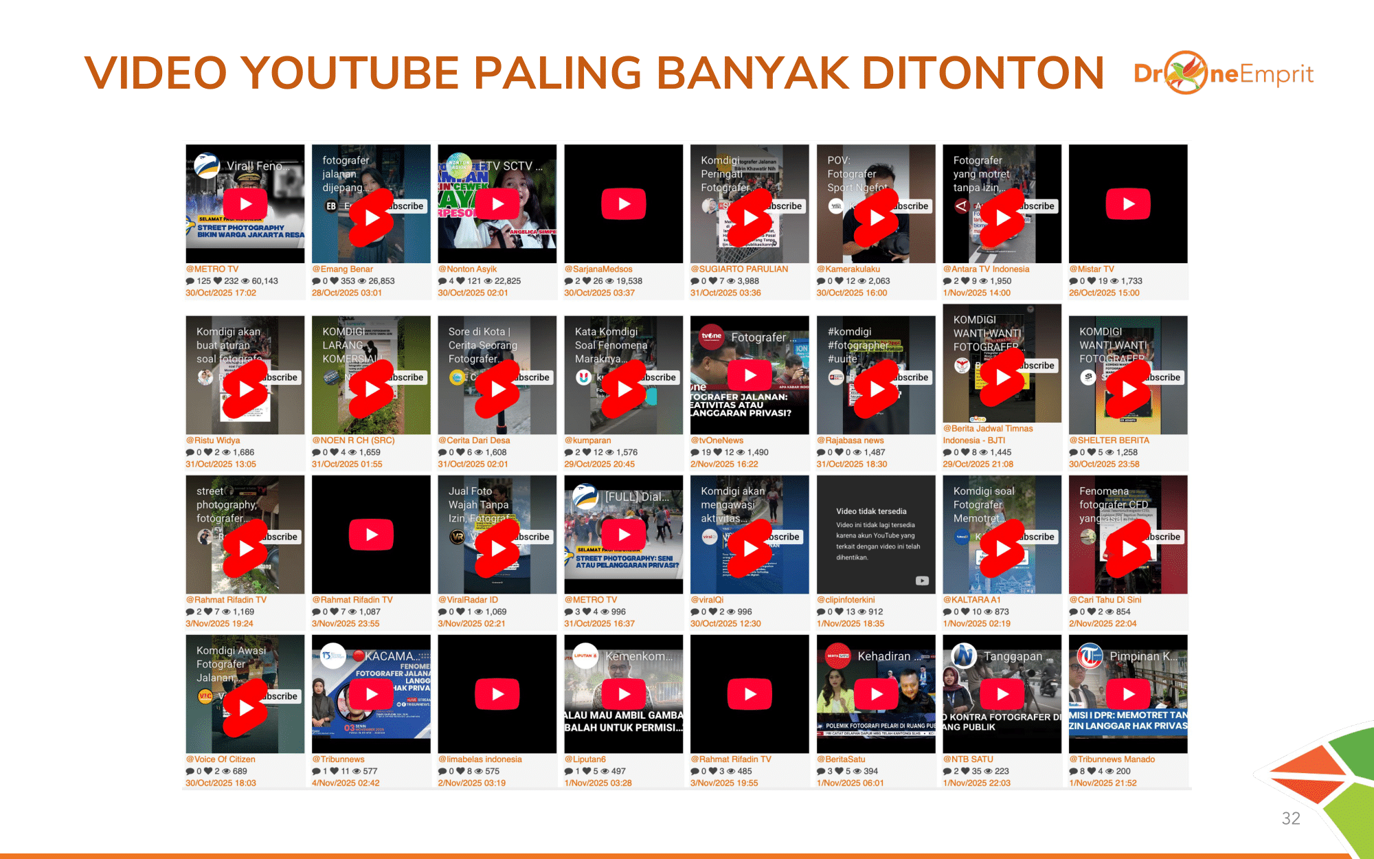 Di YouTube, @METROTV jadi channel teratas yang membahas isu ini. Uniknya, banyak video lain (termasuk FTV) justru membingkai "fotografer jalanan" secara positif.