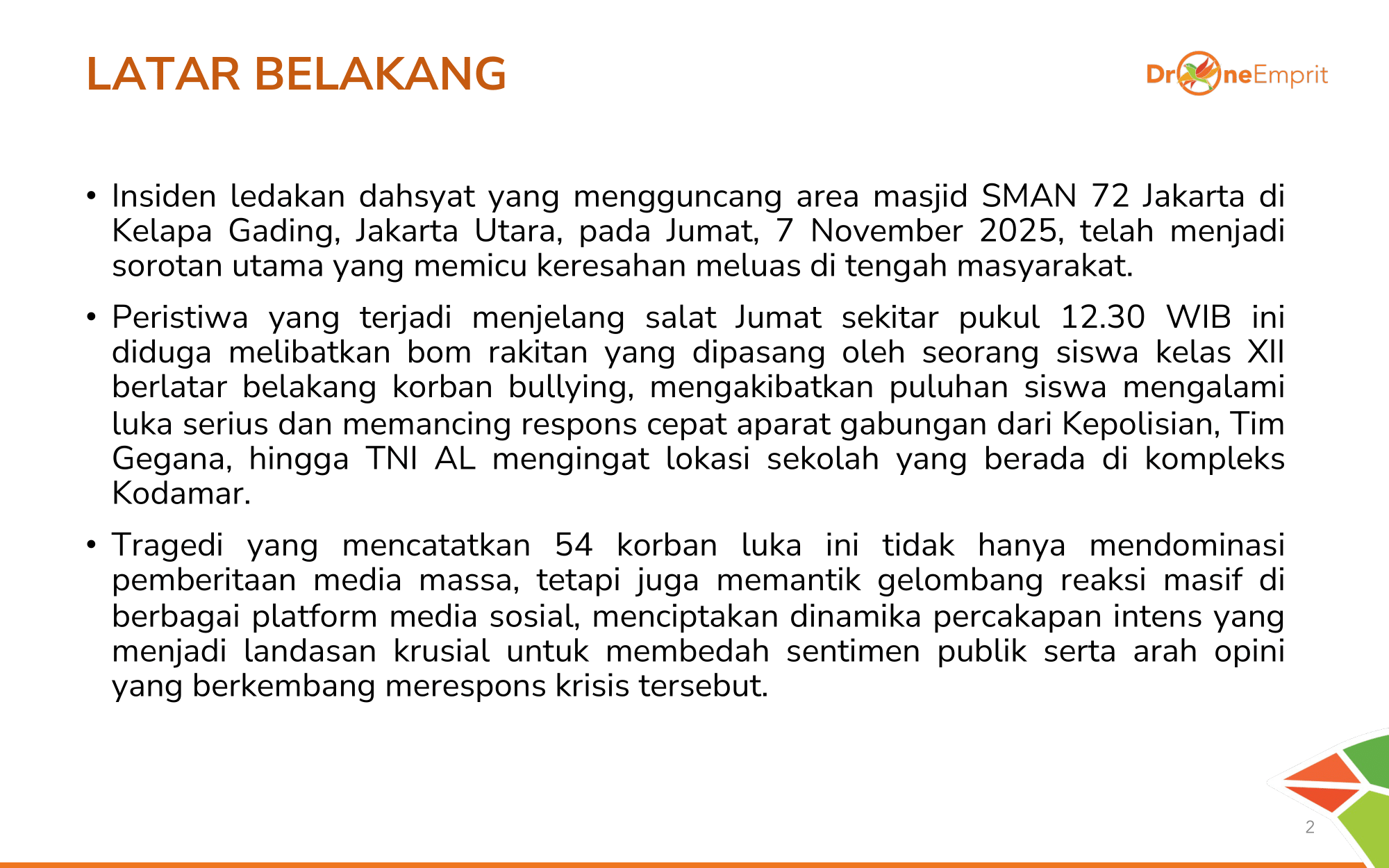 Tragedi ledakan di SMAN 72 Jakarta bukan sekadar berita kriminal, tapi alarm bagi dunia pendidikan kita. Data percakapan 7–13 Nov 2025 mengungkap pergeseran isu dari simpati hingga kemarahan.