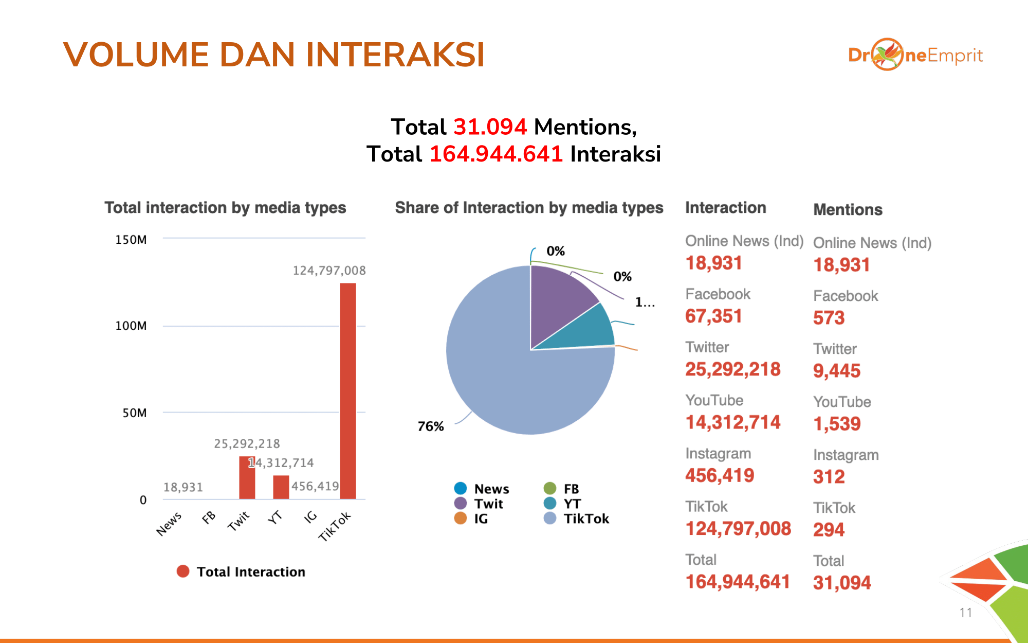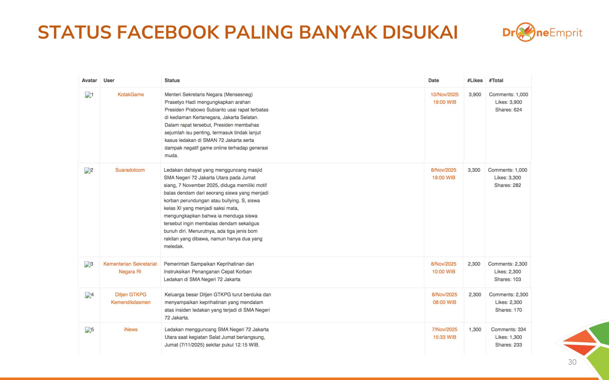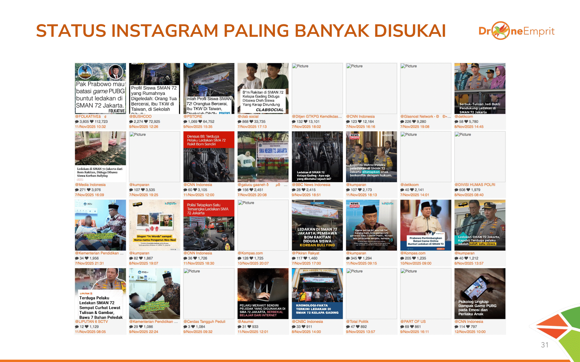 Total 31.094 mentions menghasilkan interaksi hingga 164 Juta lebih! Angka ini membuktikan betapa tingginya atensi dan keresahan publik nasional terhadap teror di sekolah ini.