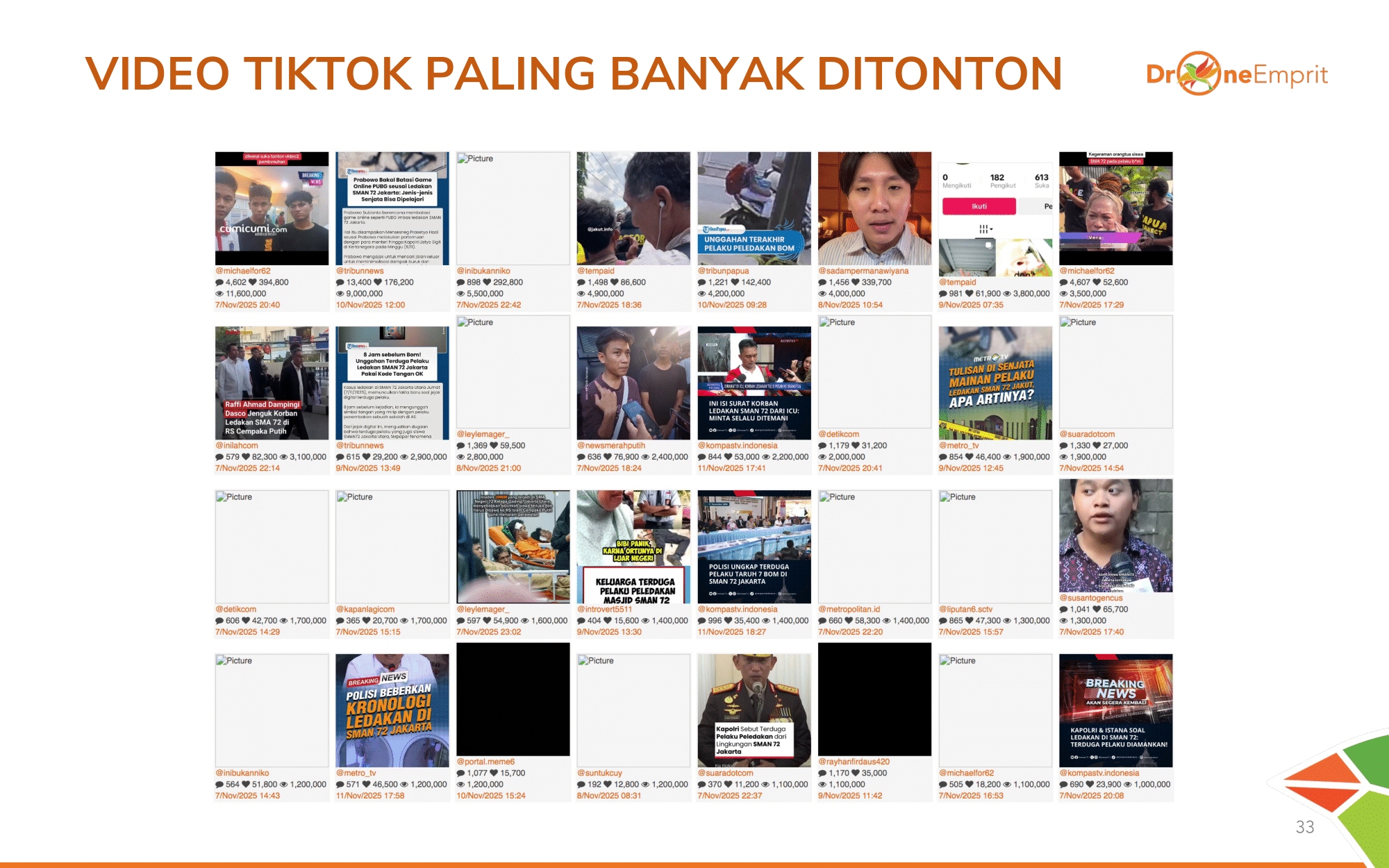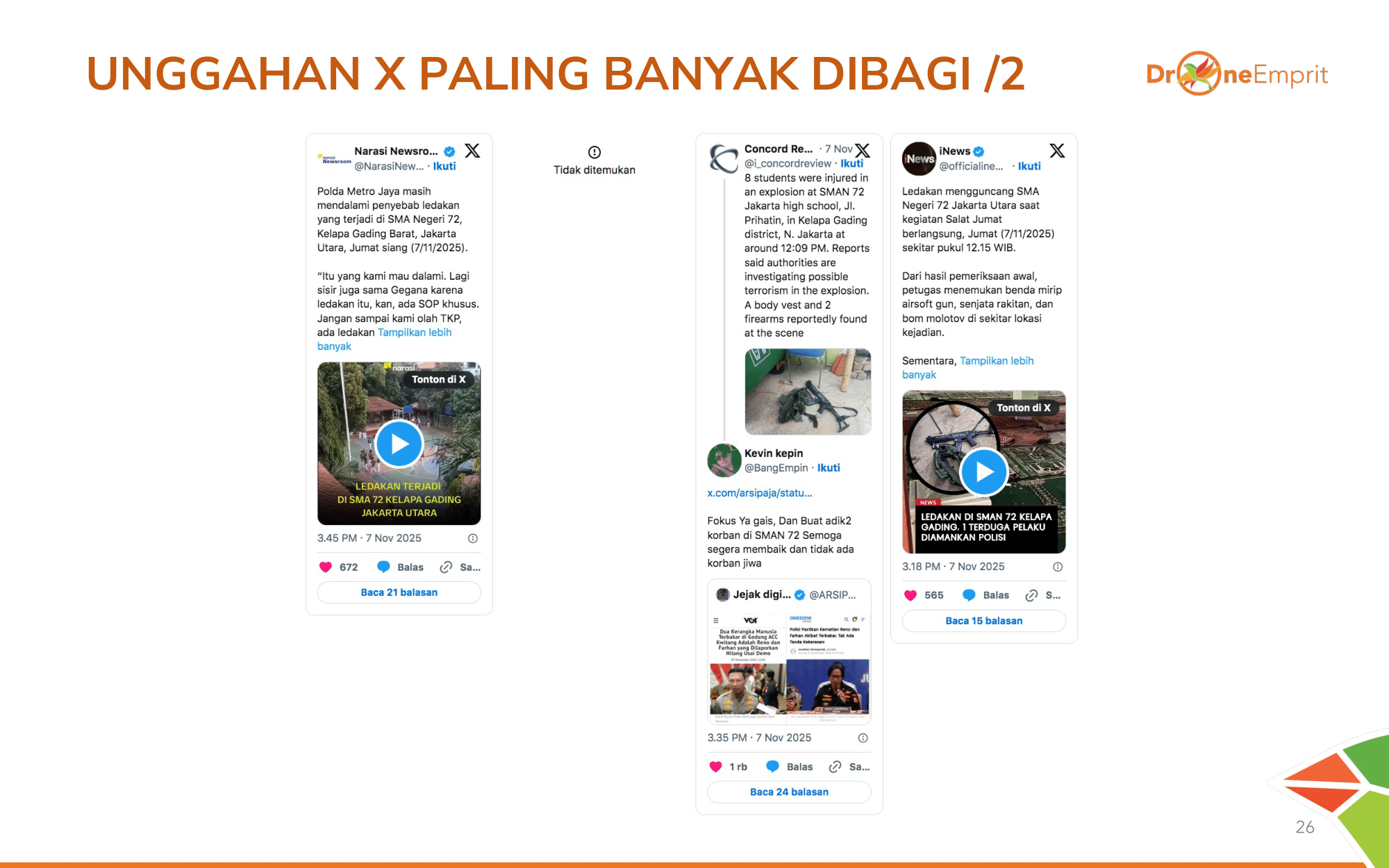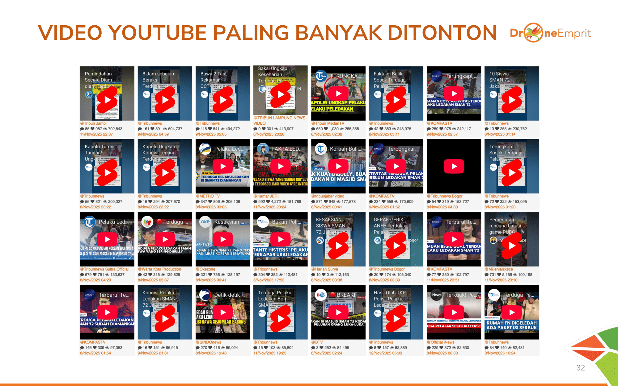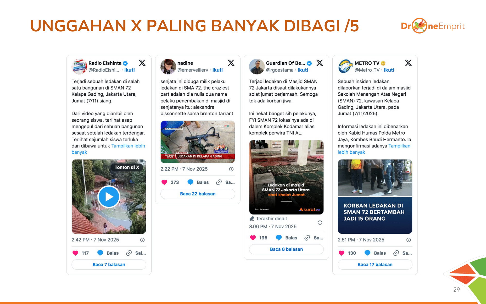Total 31.094 mentions menghasilkan interaksi hingga 164 Juta lebih! Angka ini membuktikan betapa tingginya atensi dan keresahan publik nasional terhadap teror di sekolah ini.