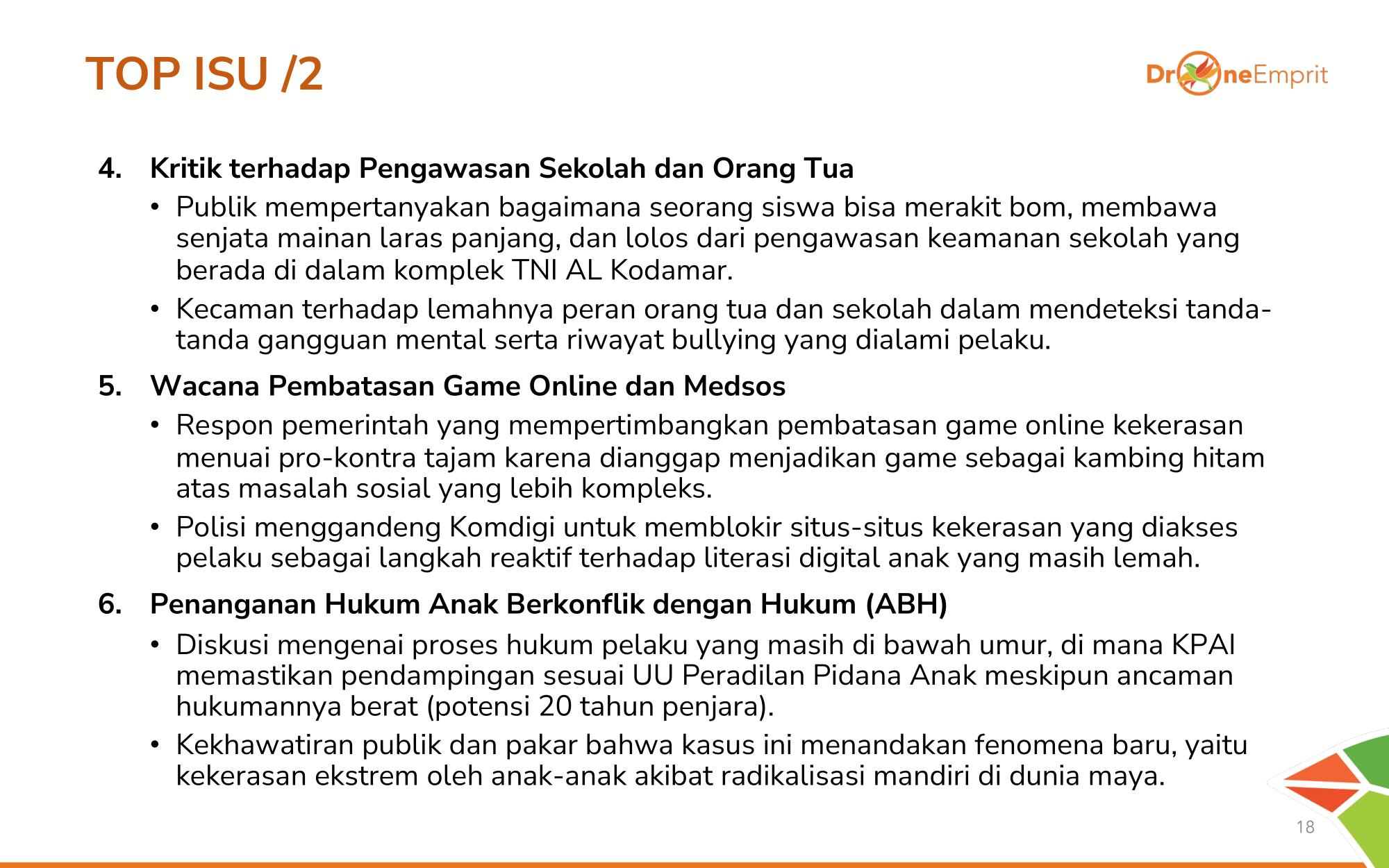 Kritik tajam pada lemahnya pengawasan ortu & sekolah di area militer. Wacana blokir gamemenuai pro-kontra karena dianggap solusi reaktif. Penanganan hukum pelaku anak (ABH) juga jadi sorotan serius.