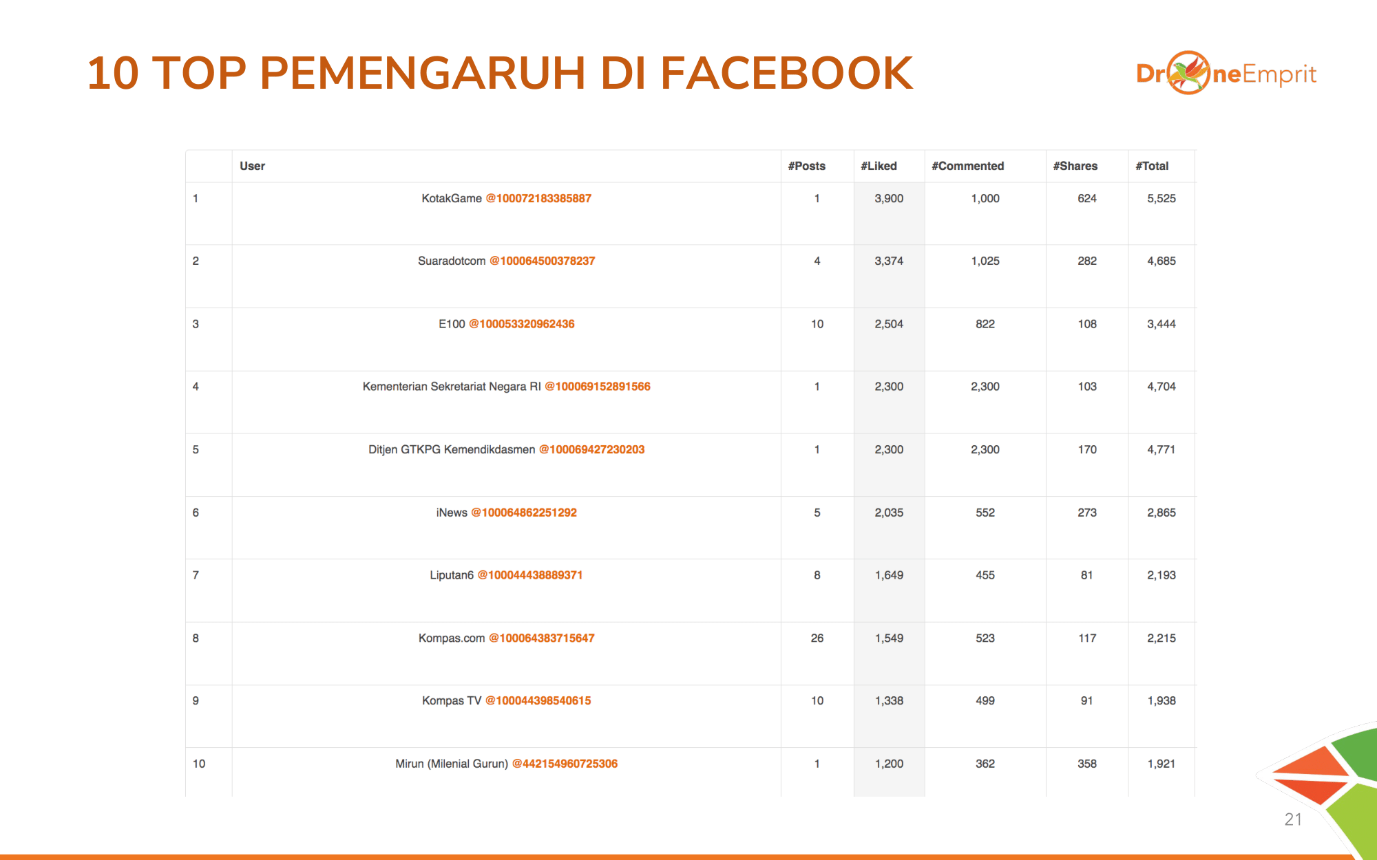 Di Facebook, KotakGame memimpin interaksi. Akun resmi pemerintah (Setneg) juga masuk top list.
