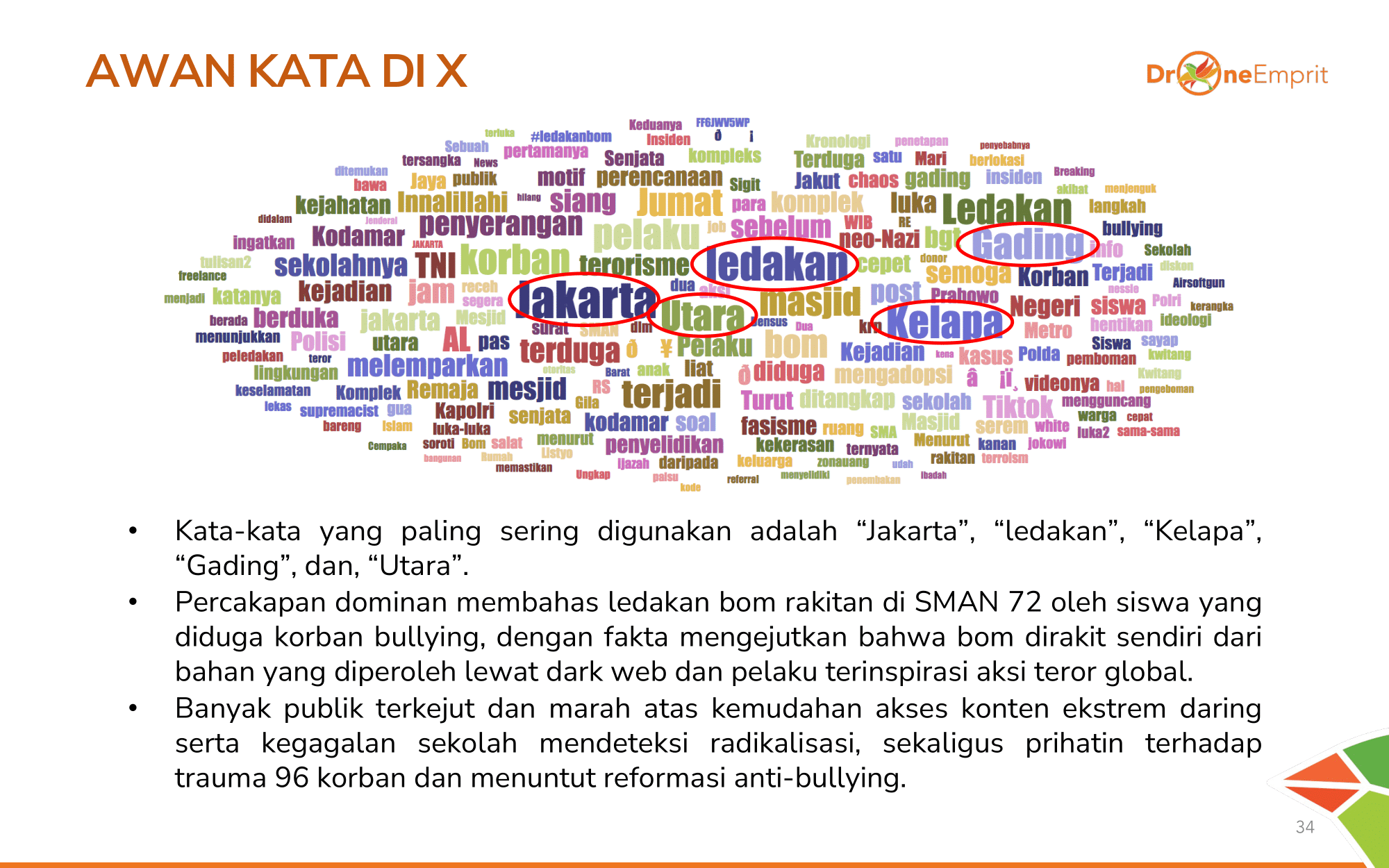 "Jakarta" dan "ledakan" mendominasi percakapan tentang bom rakitan siswa korban bullying yang belajar dari dark web. Publik marah atas akses konten ekstrem dan menuntut reformasi anti-bullying demi 96 korban.