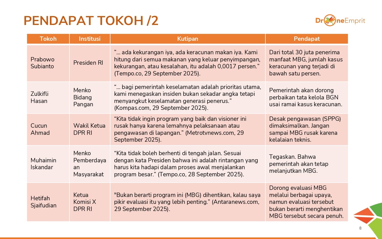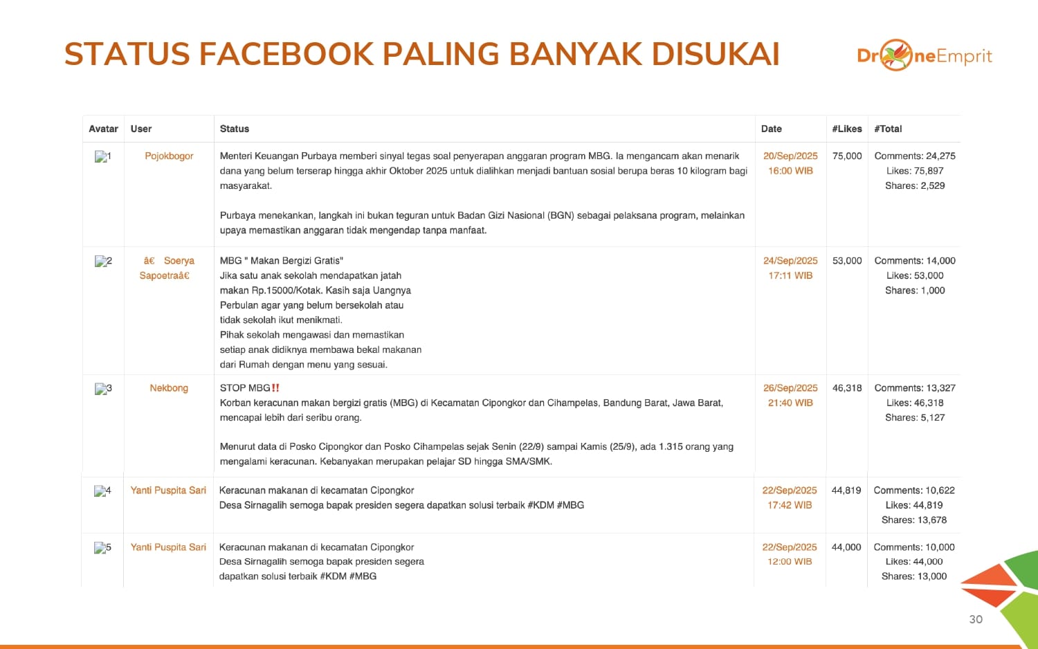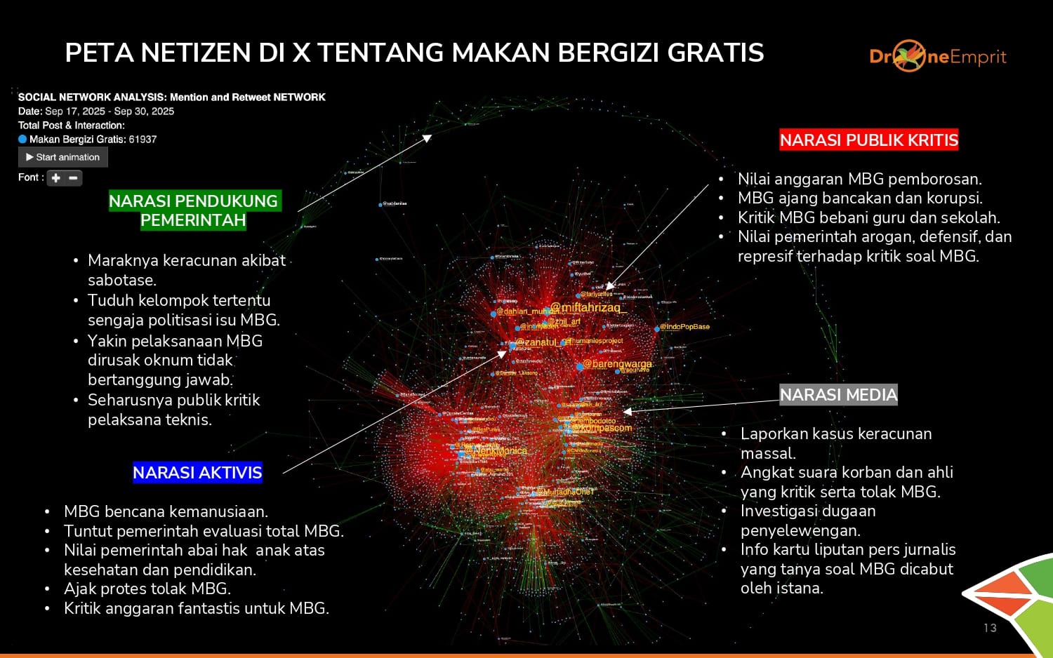 Dengan lebih dari 172 ribu mentions dan 542 juta interaksi, isu MBG jelas menguasai ruang digital. Angka ini menunjukkan atensi publik yang luar biasa tinggi terhadap polemik ini.