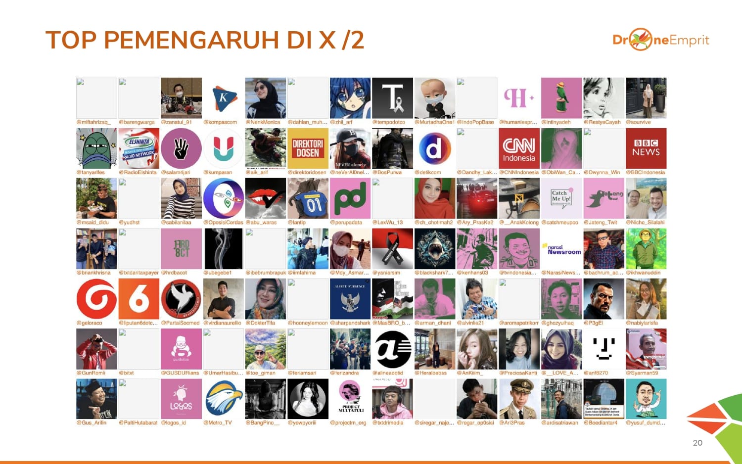 Berikut adalah daftar akun-akun yang paling berpengaruh dalam membentuk percakapan seputar MBG di platform X.