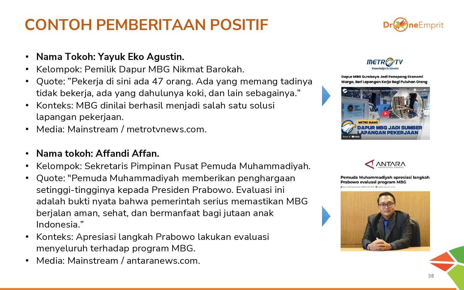Di tengah badai kritik, narasi positif muncul dari sisi penyerapan tenaga kerja di dapur MBG & apresiasi dari organisasi kepemudaan terhadap langkah evaluasi yang dilakukan pemerintah. Lalu, seperti apa contoh berita negatifnya?