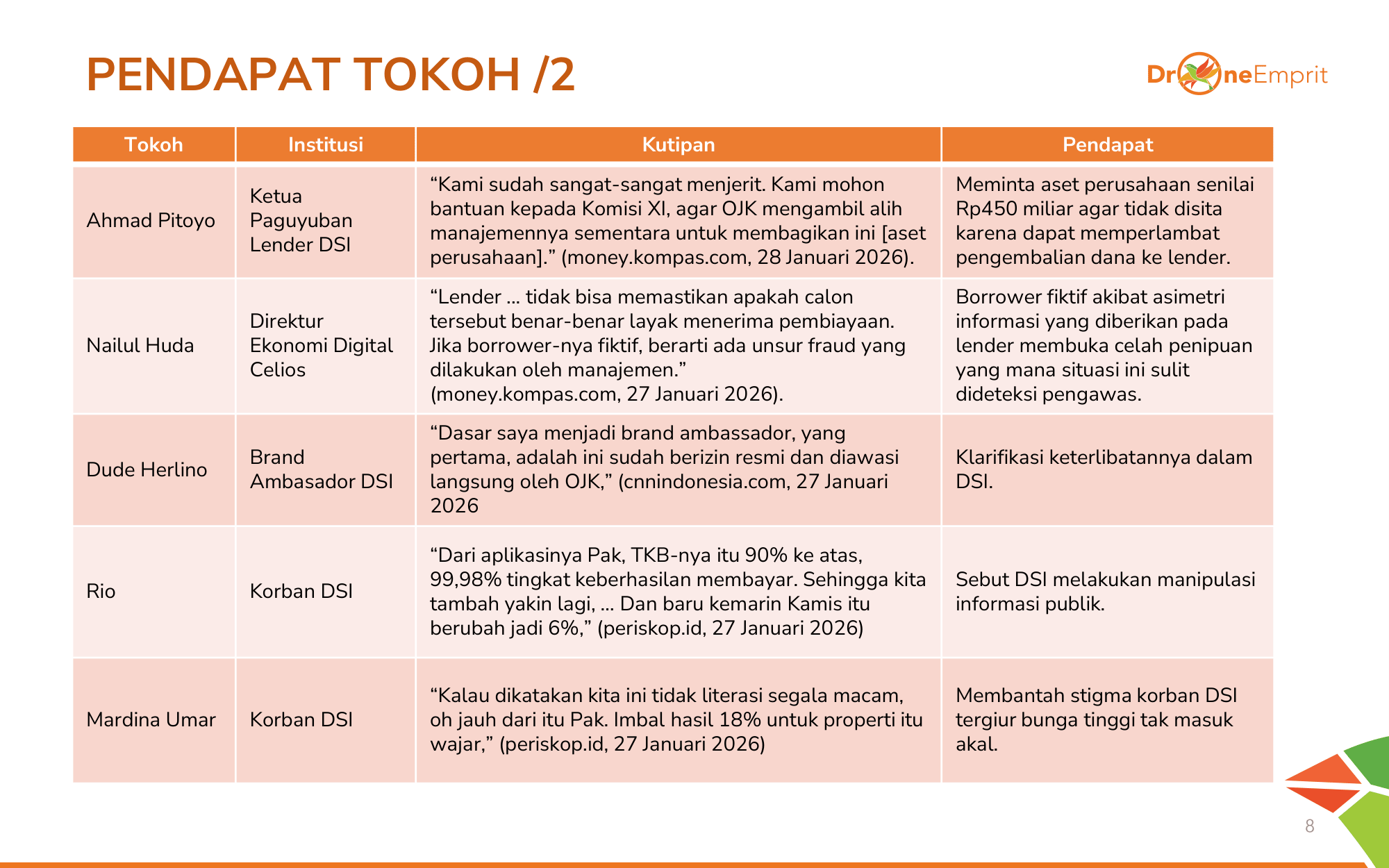 Intervensi DPR melalui RDP memberi harapan baru bagi korban. Namun, sorotan juga tertuju pada keterlibatan artis Dude Harlino sebagai Brand Ambassador. Publik mempertanyakan tanggung jawab moral influencer dalam mempromosikan produk.