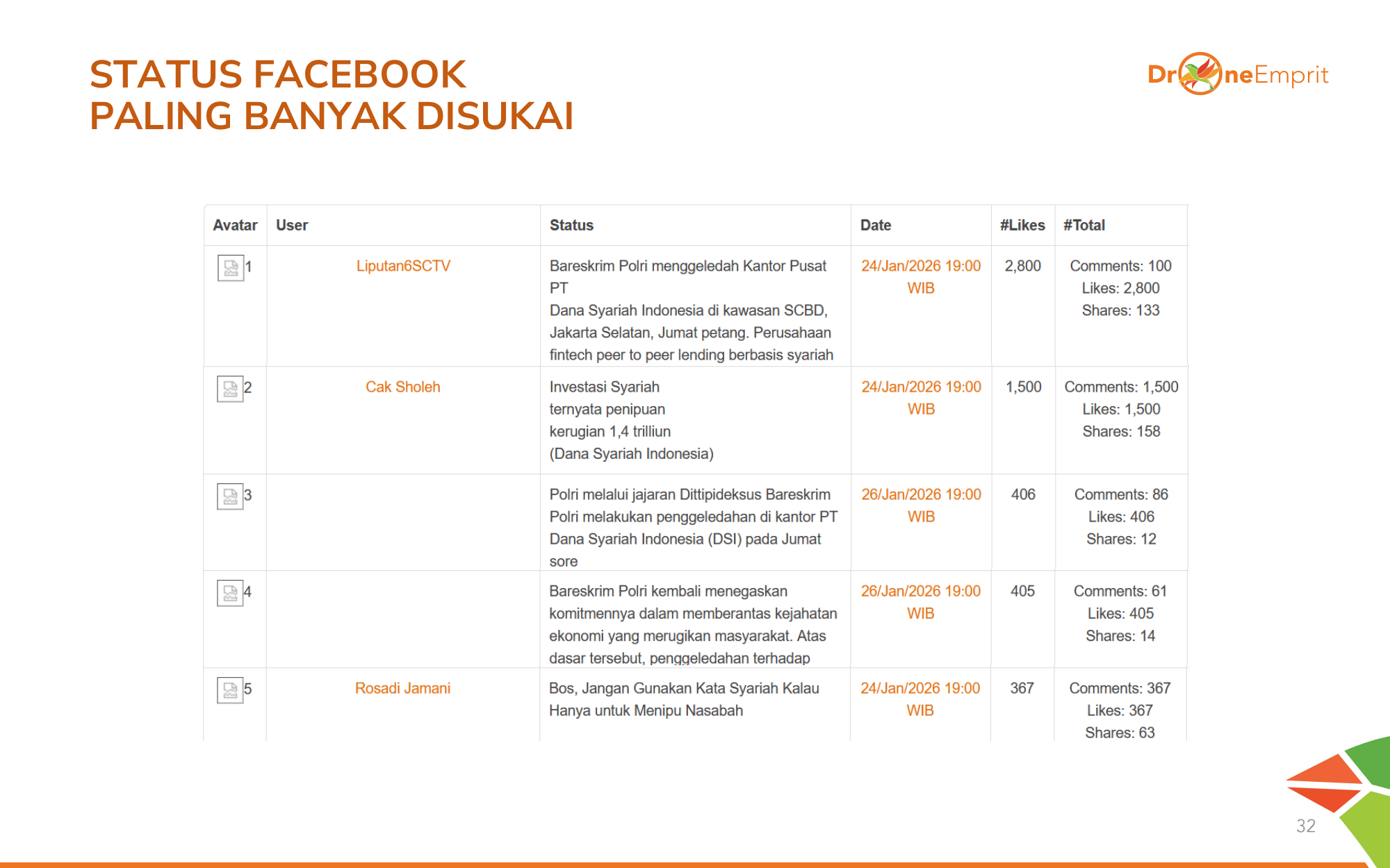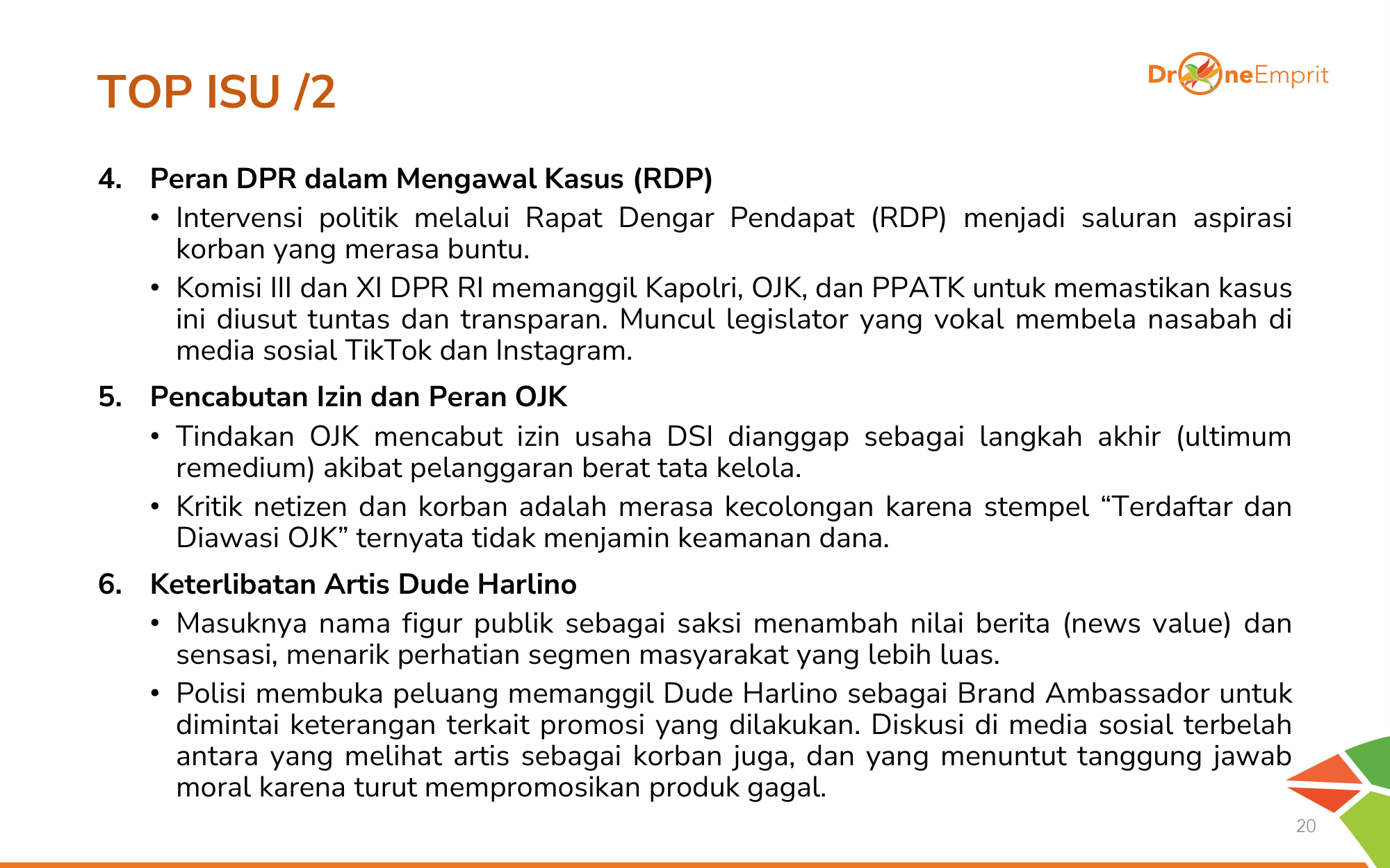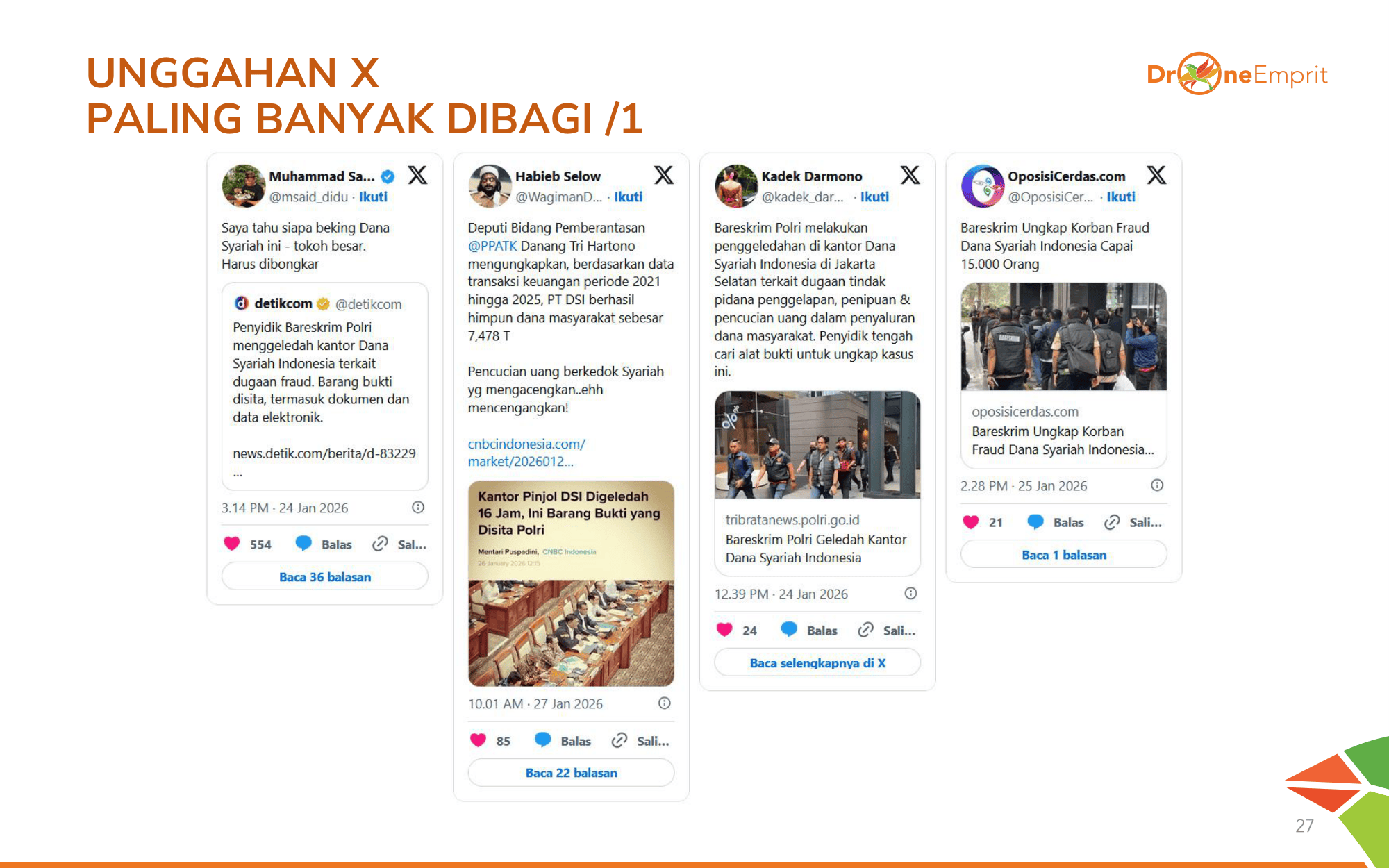 Tiga isu teratas: Dugaan fraud berkedok syariah yang melukai religiusitas publik, penggeledahan dramatis kantor DSI selama 16 jam, serta skala kerugian Rp2,4 T yang menjerat 15.000 korban dari berbagai lapisan masyarakat.