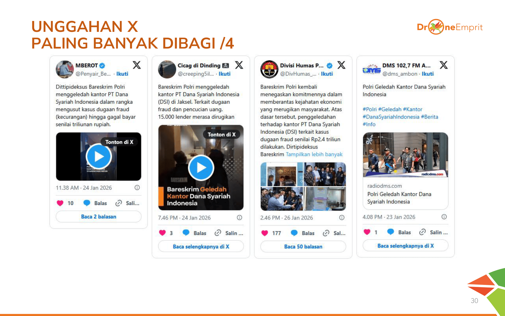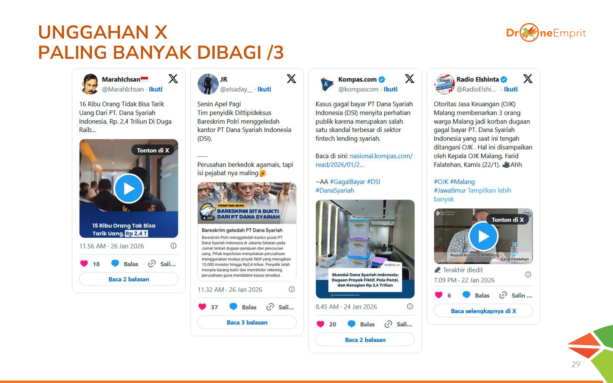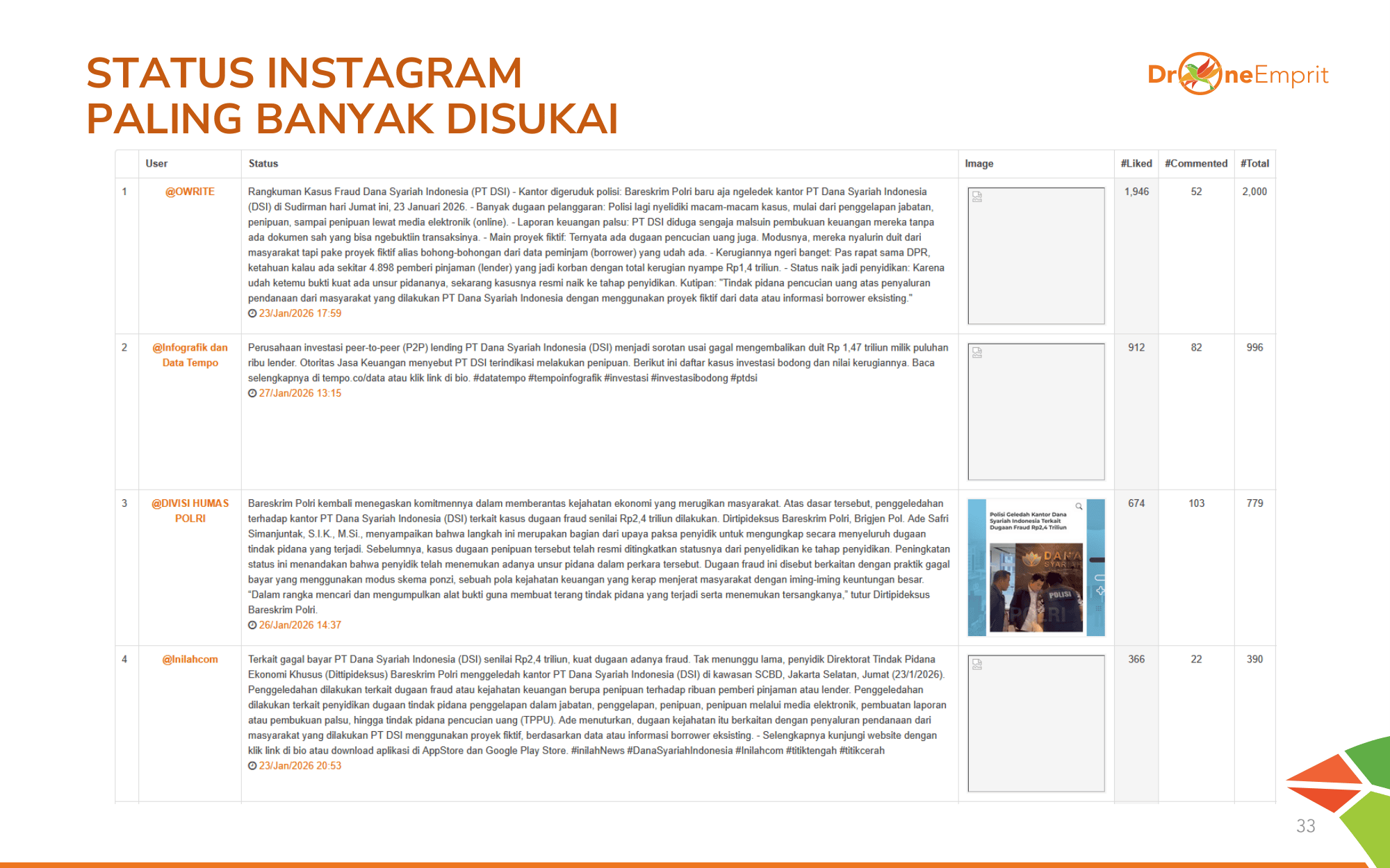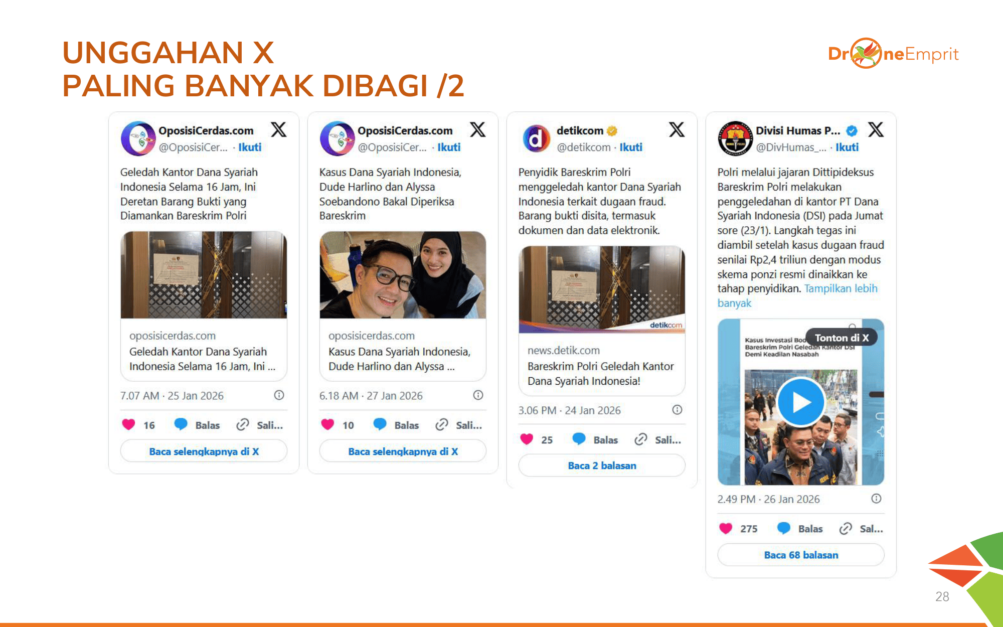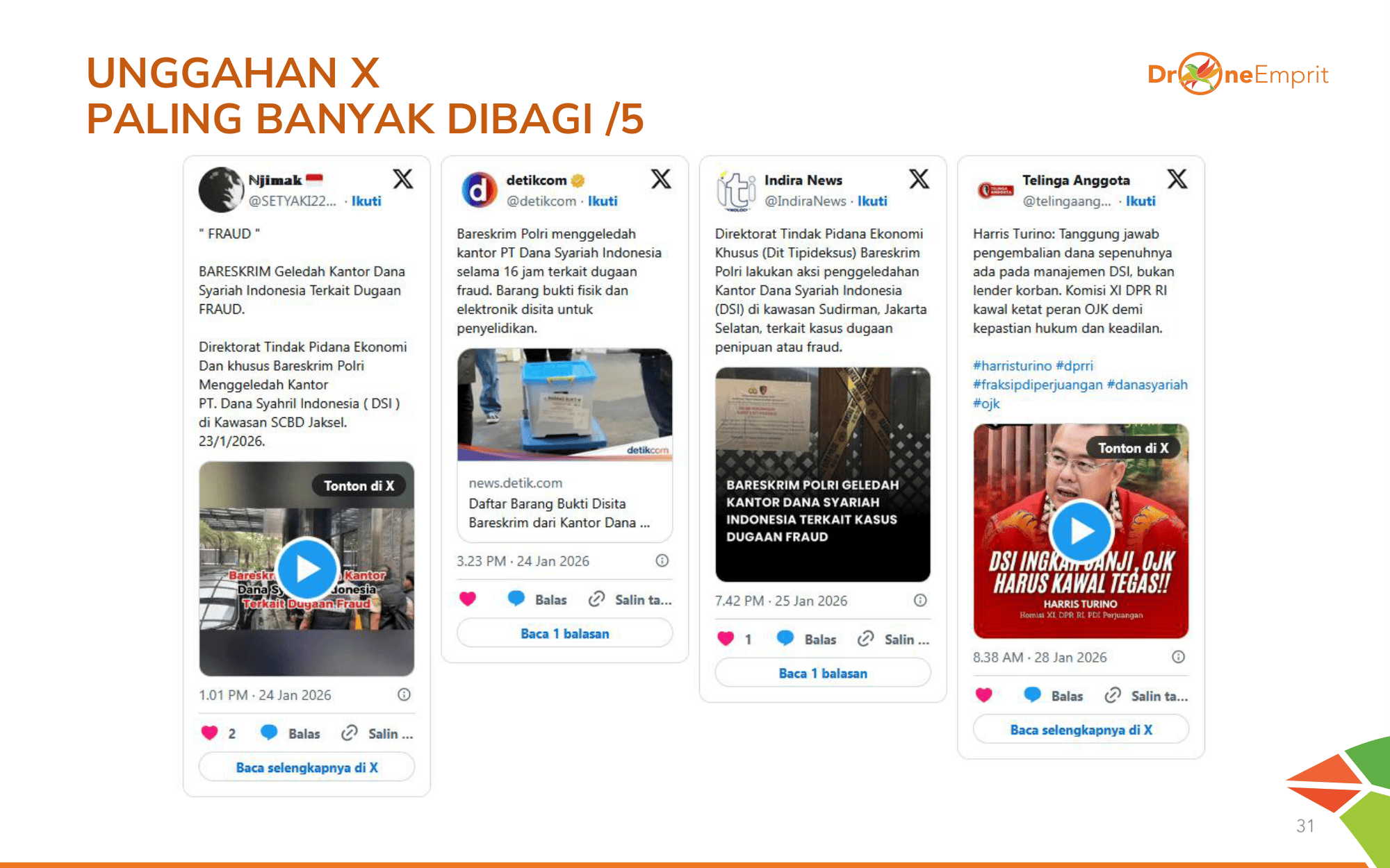 Infografik dari @OWRITE dan Tempo menjadi primadona. Penjelasan soal proyek fiktif dan manipulasi laporan keuangan membantu publik memahami betapa sistematisnya fraud yang dilakukan PT DSI.