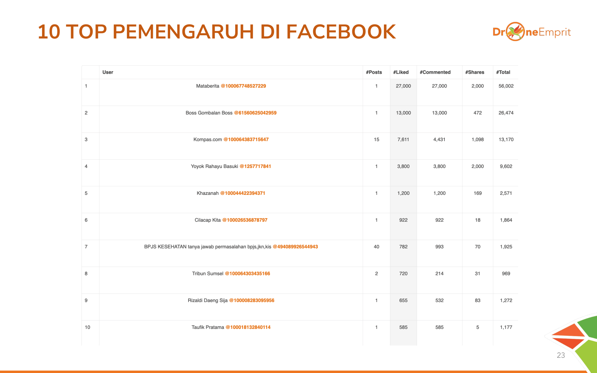 Di Facebook, akun berita alternatif dan mainstream bersaing. Mataberita memimpin dengan sentimen negatif, sementara akun resmi BPJS aktif memberikan respons positif/edukasi di kolom komentar.