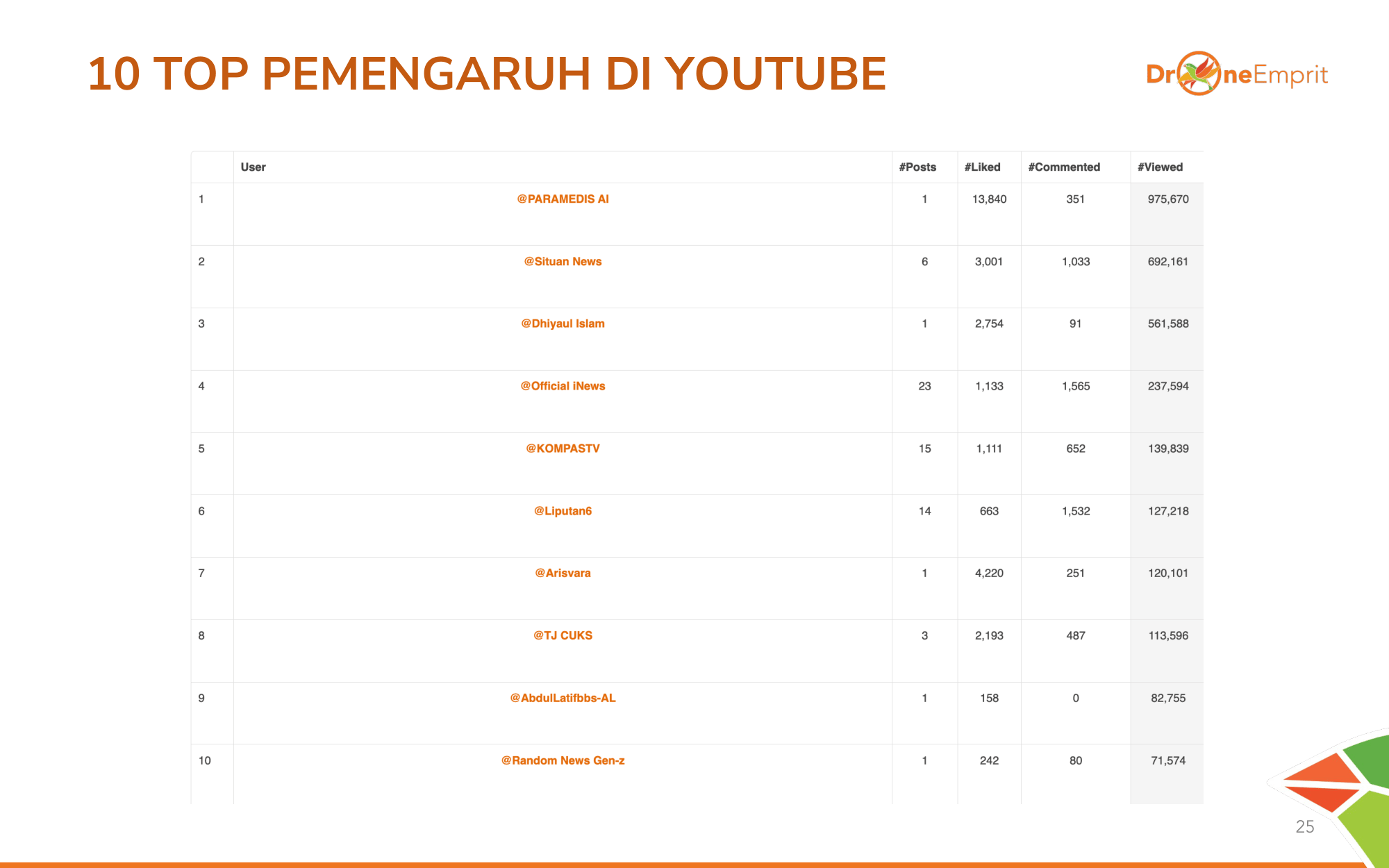 Konten visual dari Paramedis AI dan kanal berita seperti iNews serta KompasTV memimpin. Video edukasi dan laporan berita mendominasi, dengan campuran sentimen positif dan negatif.