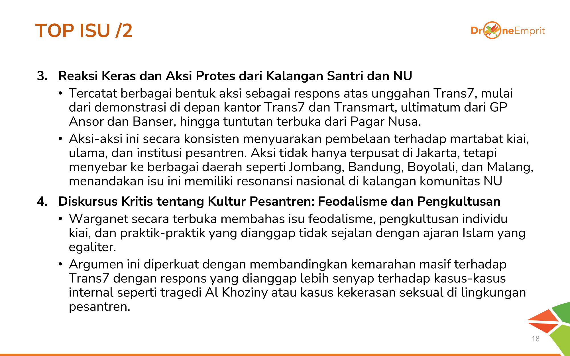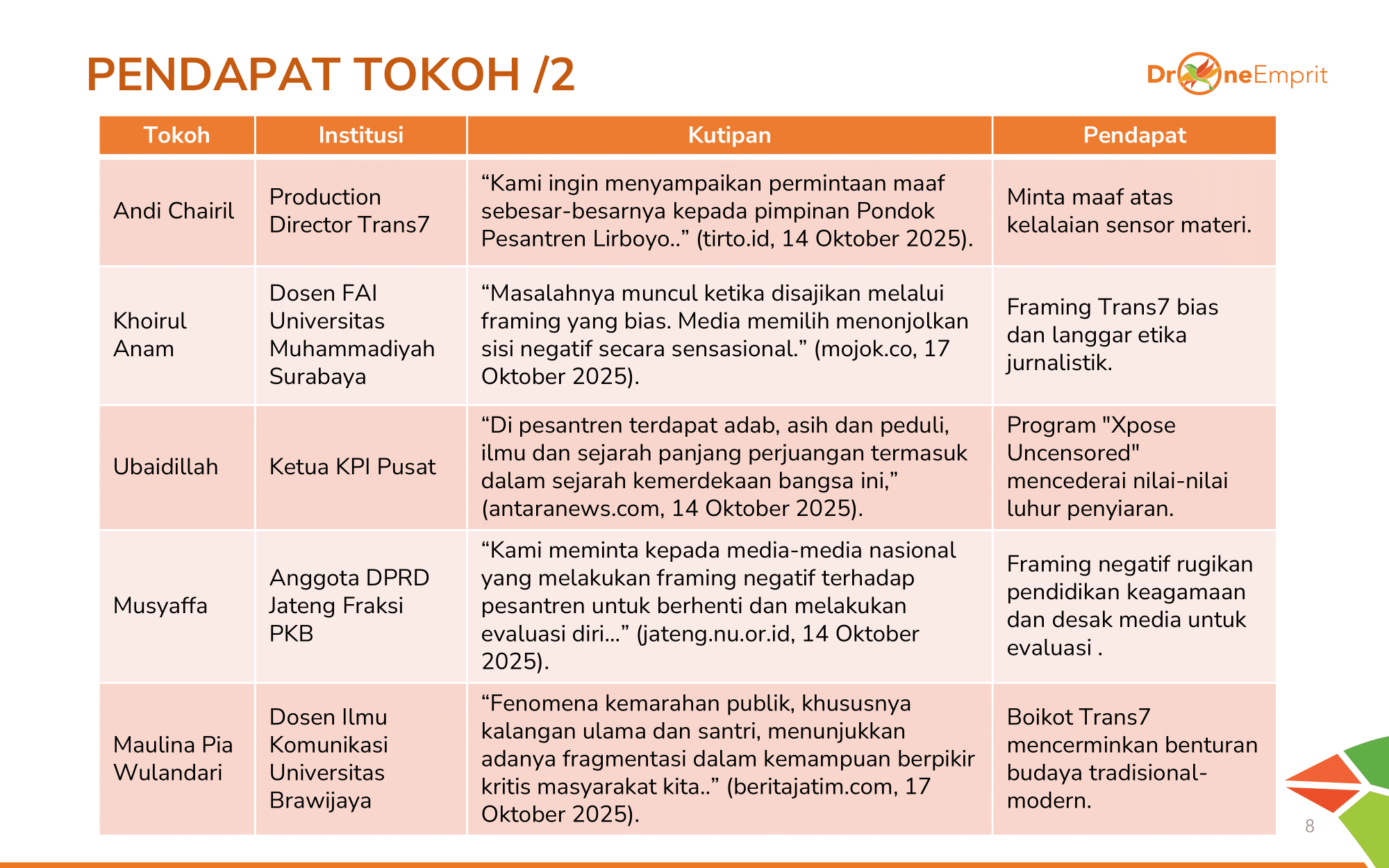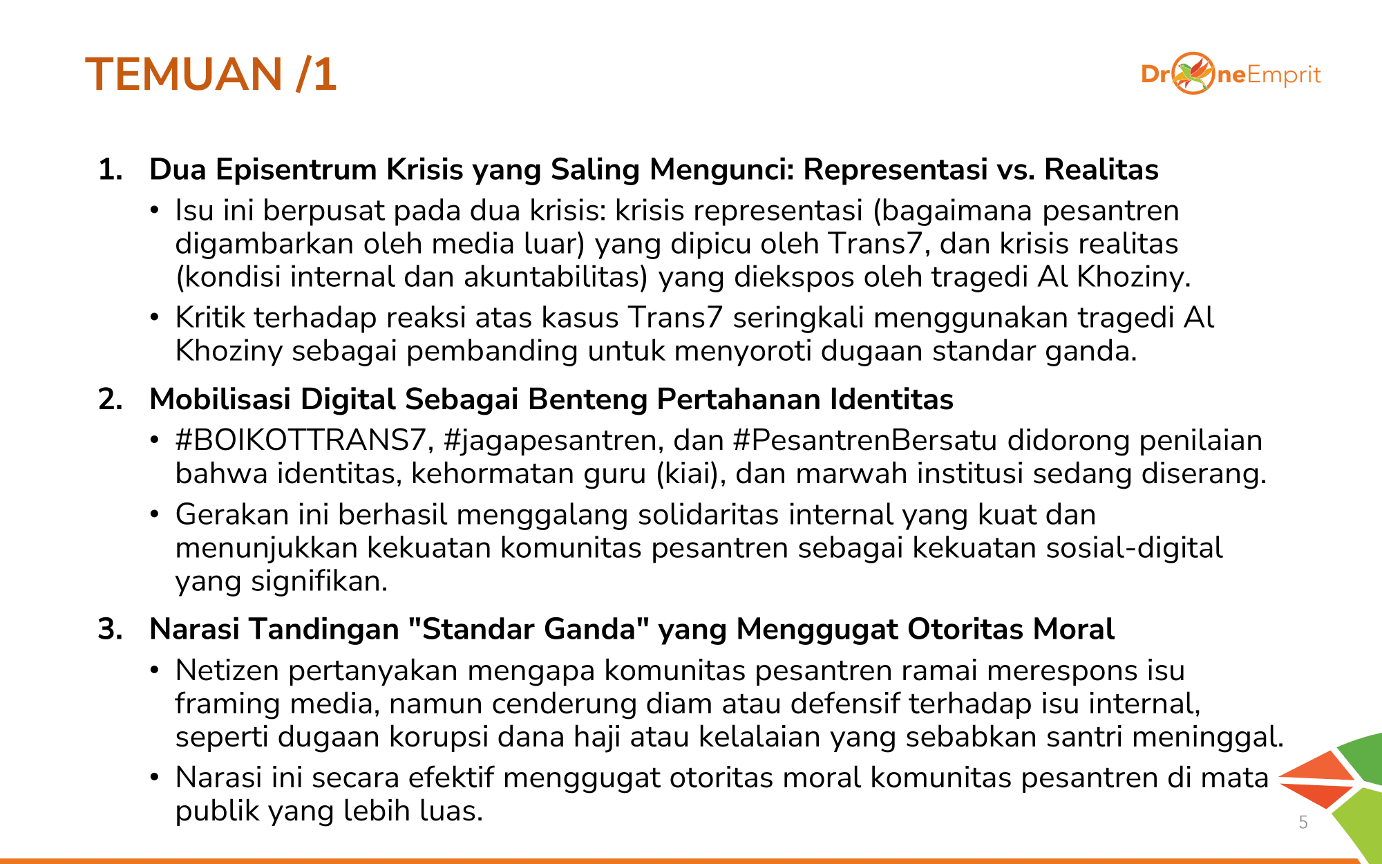 Dua isu utama menjadi pusat perhatian. Pertama, kontroversi framing negatif 'Xpose Uncensored' Trans7 yang memicu kemarahan kolektif. Kedua, tragedi ambruknya Ponpes Al Khoziny yang memantik diskursus soal akuntabilitas.
