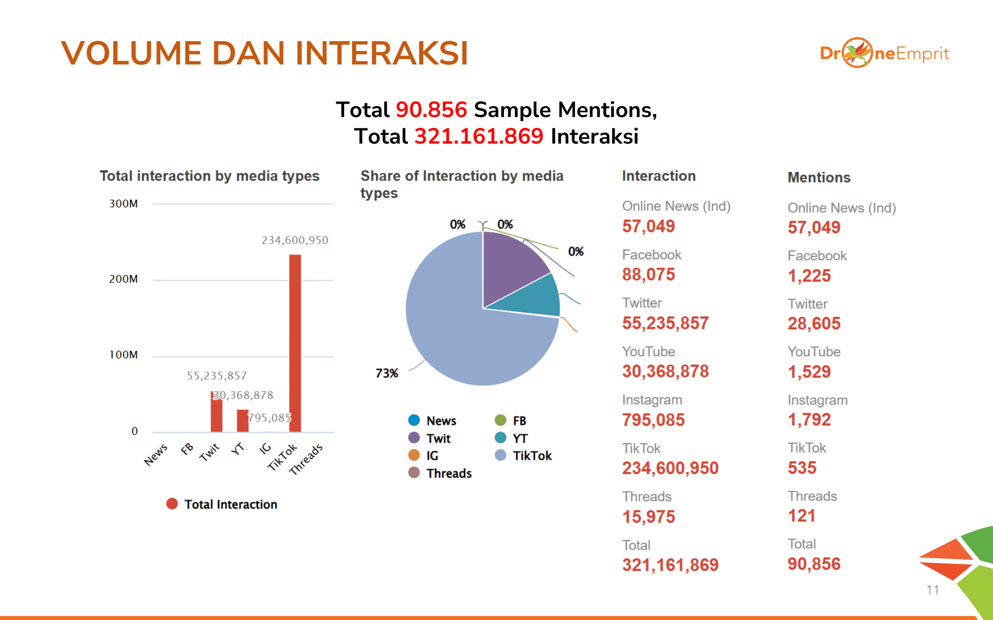 Secara total, isu ini menghasilkan lebih dari 90 ribu mention dengan jangkauan interaksi yang masif hingga 321 juta kali. Angka ini menunjukkan betapa besarnya perhatian publik.
