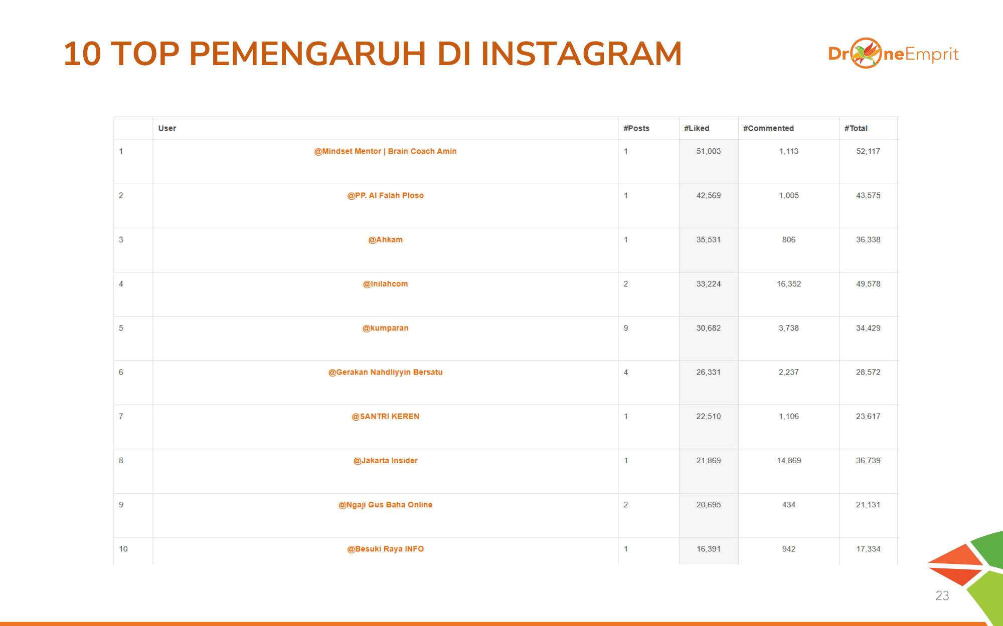 Instagram menampilkan perpaduan sentimen. Akun motivasi kontras dengan akun pesantren. Media berita juga menjadi pemain kunci.