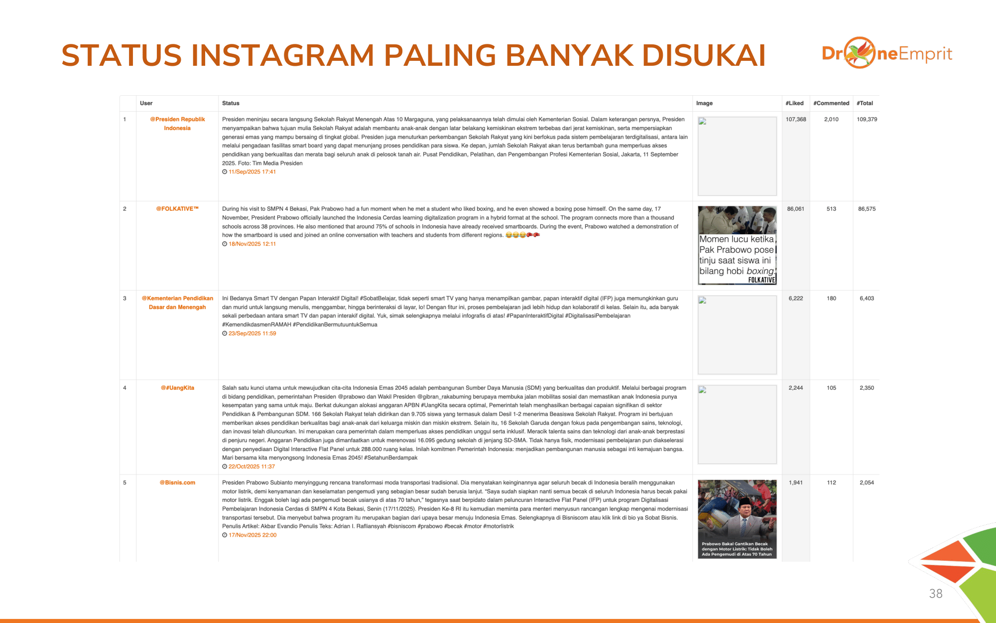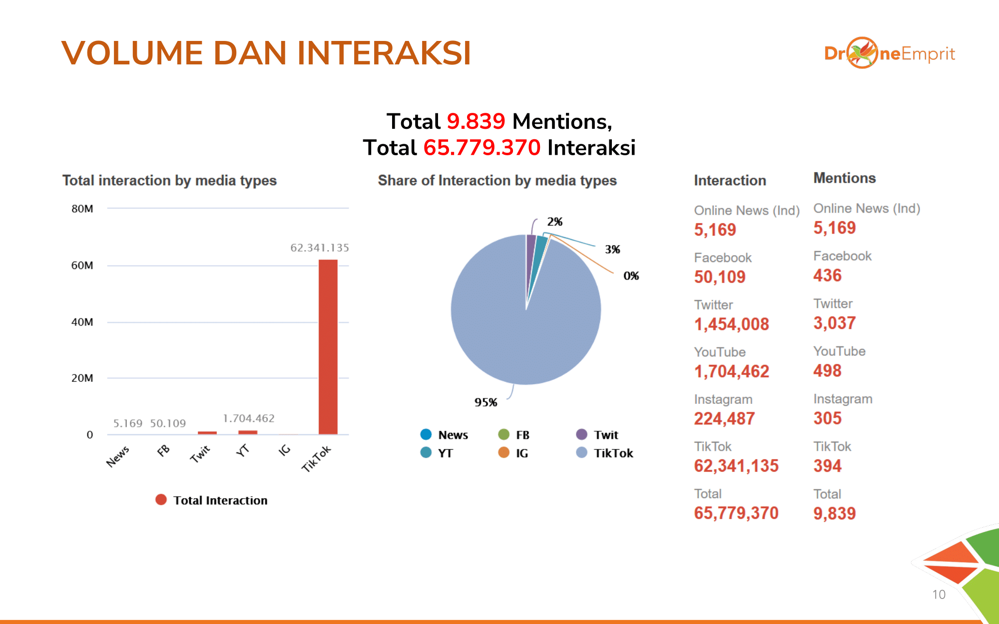 Total 9.839 sample mentions menghasilkan interaksi masif hingga 65 juta lebih! Angka ini membuktikan isu pendidikan & teknologi sangat memantik atensi publik luas, baik pro maupun kontra.
