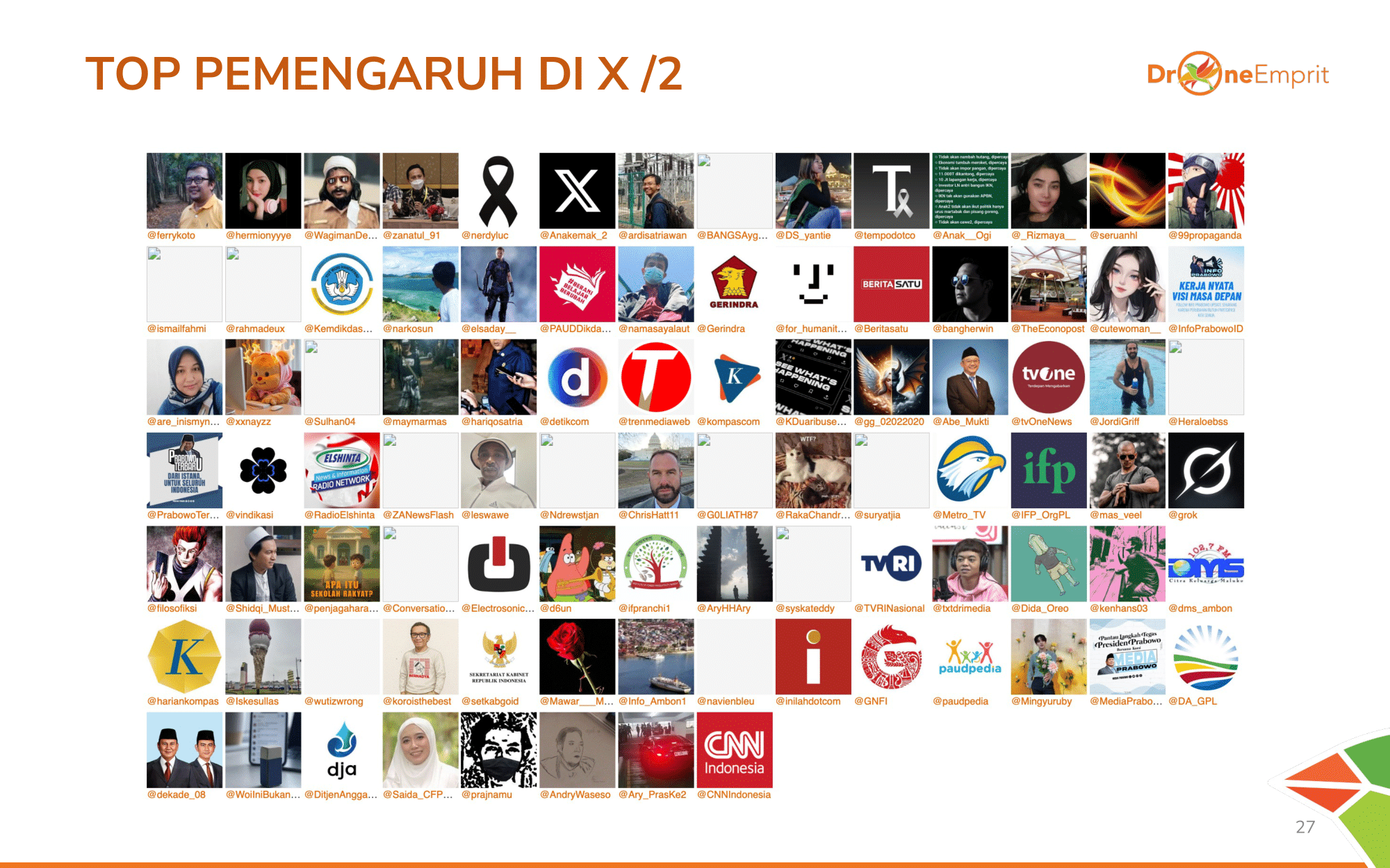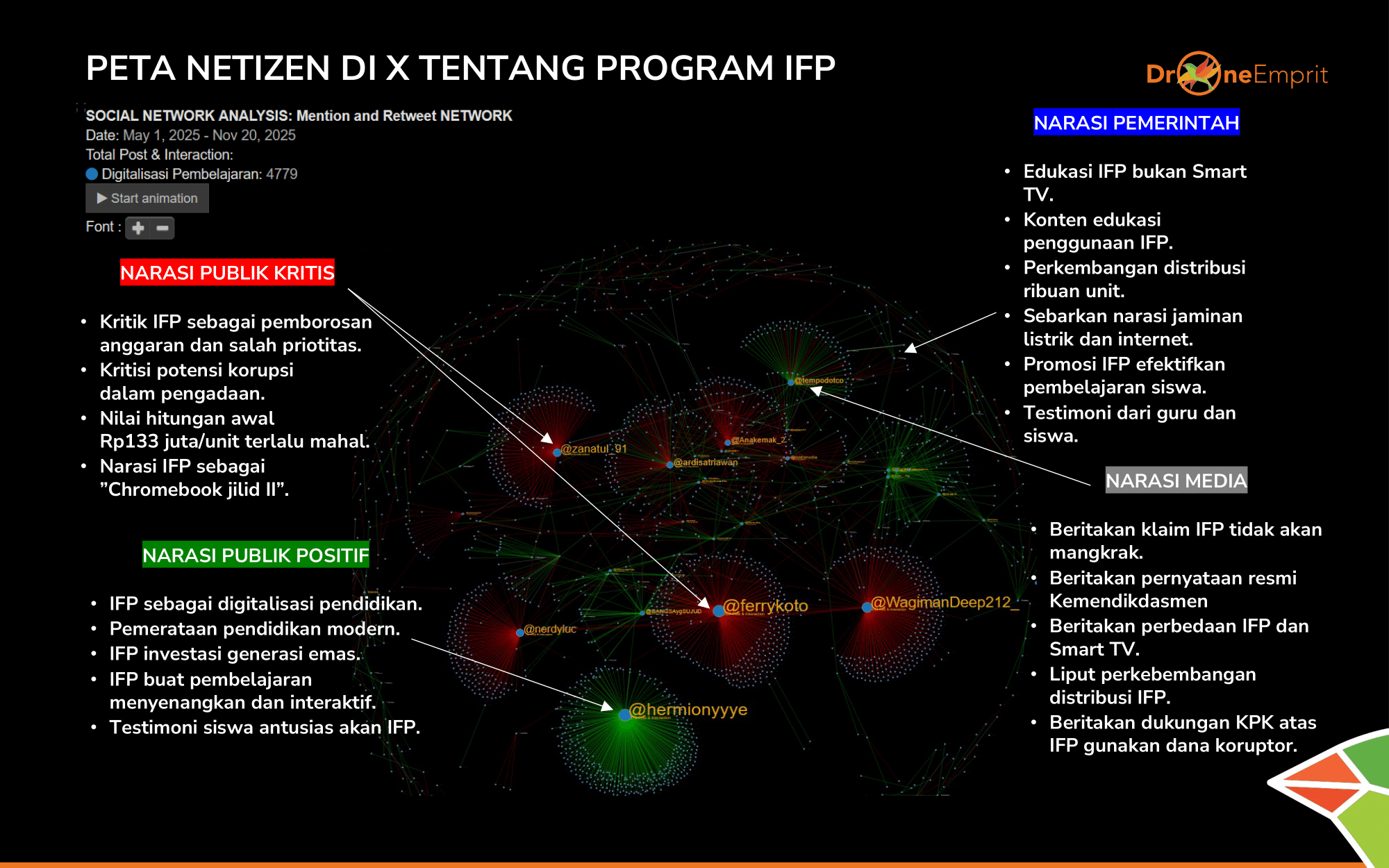 Berikut deretan akun paling berpengaruh di X. Dari pengamat, netizen kritis, hingga akun resmi kementerian, semuanya berebut atensi dalam diskursus IFP ini.