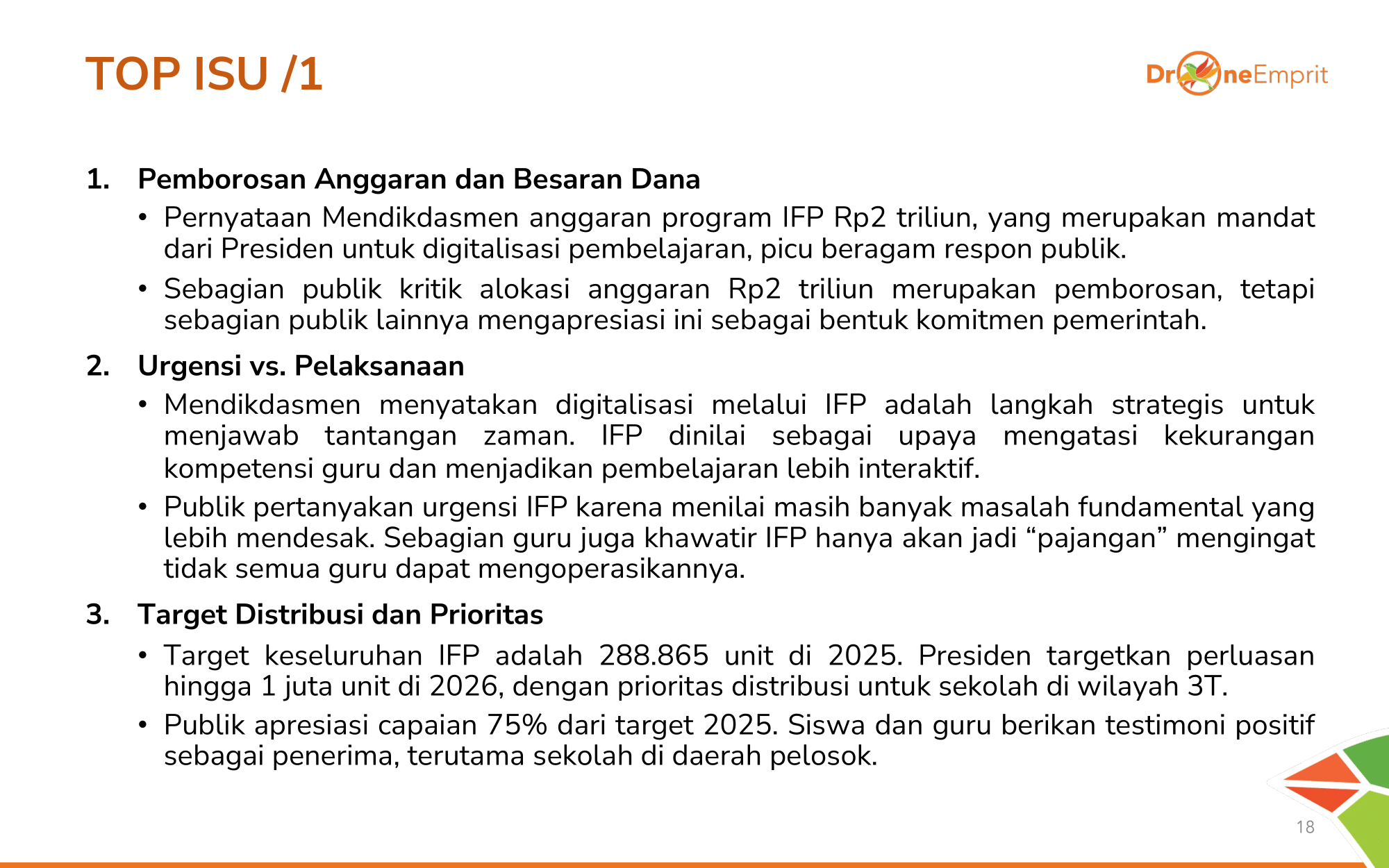 Tiga isu panas: 1) Anggaran Rp2T dianggap boros vs bukti komitmen pemerintah. 2) Urgensi alat canggih di tengah kompetensi guru yang minim. 3) Ambisi target 1 juta unit vs realitas kesiapan di lapangan.