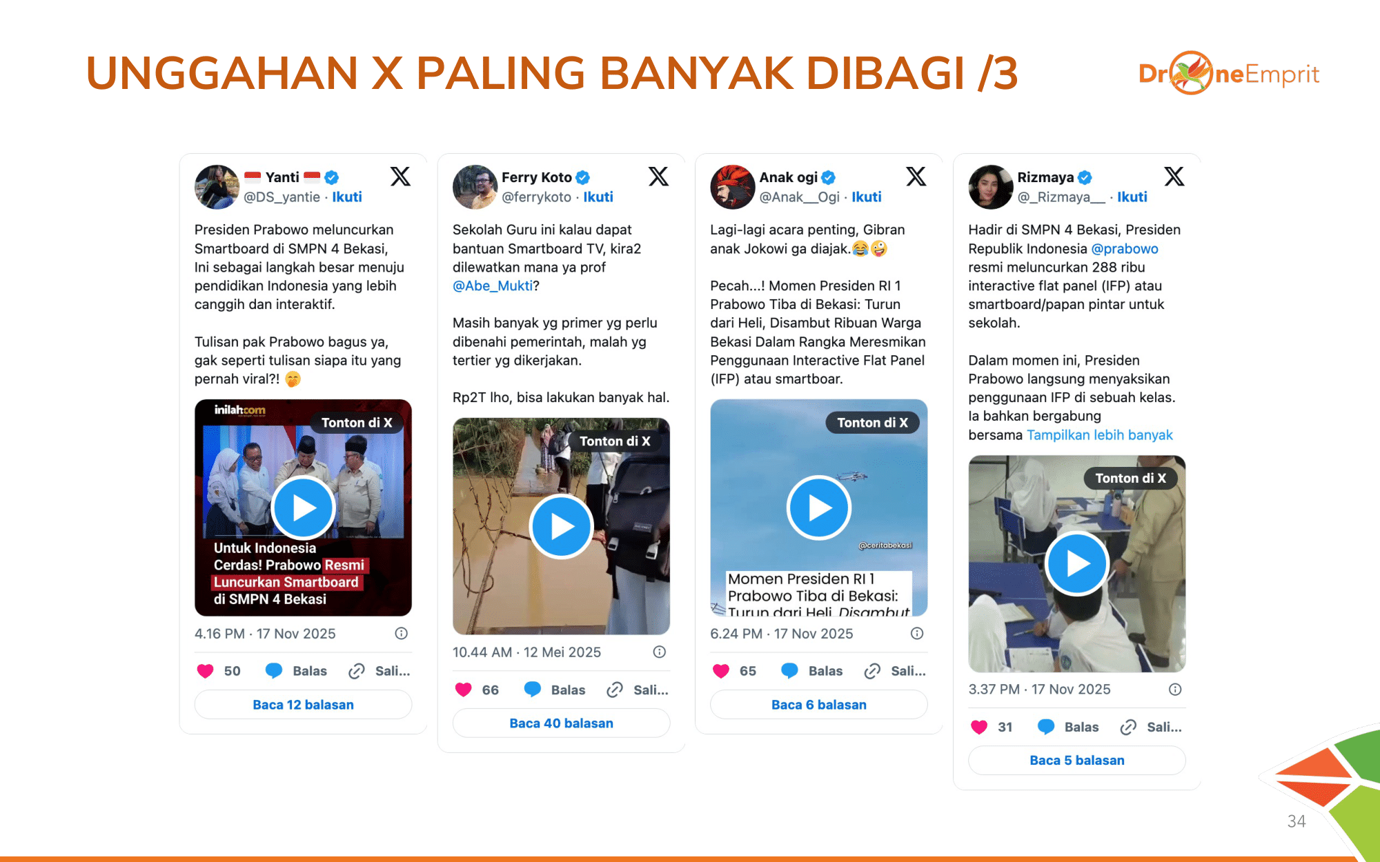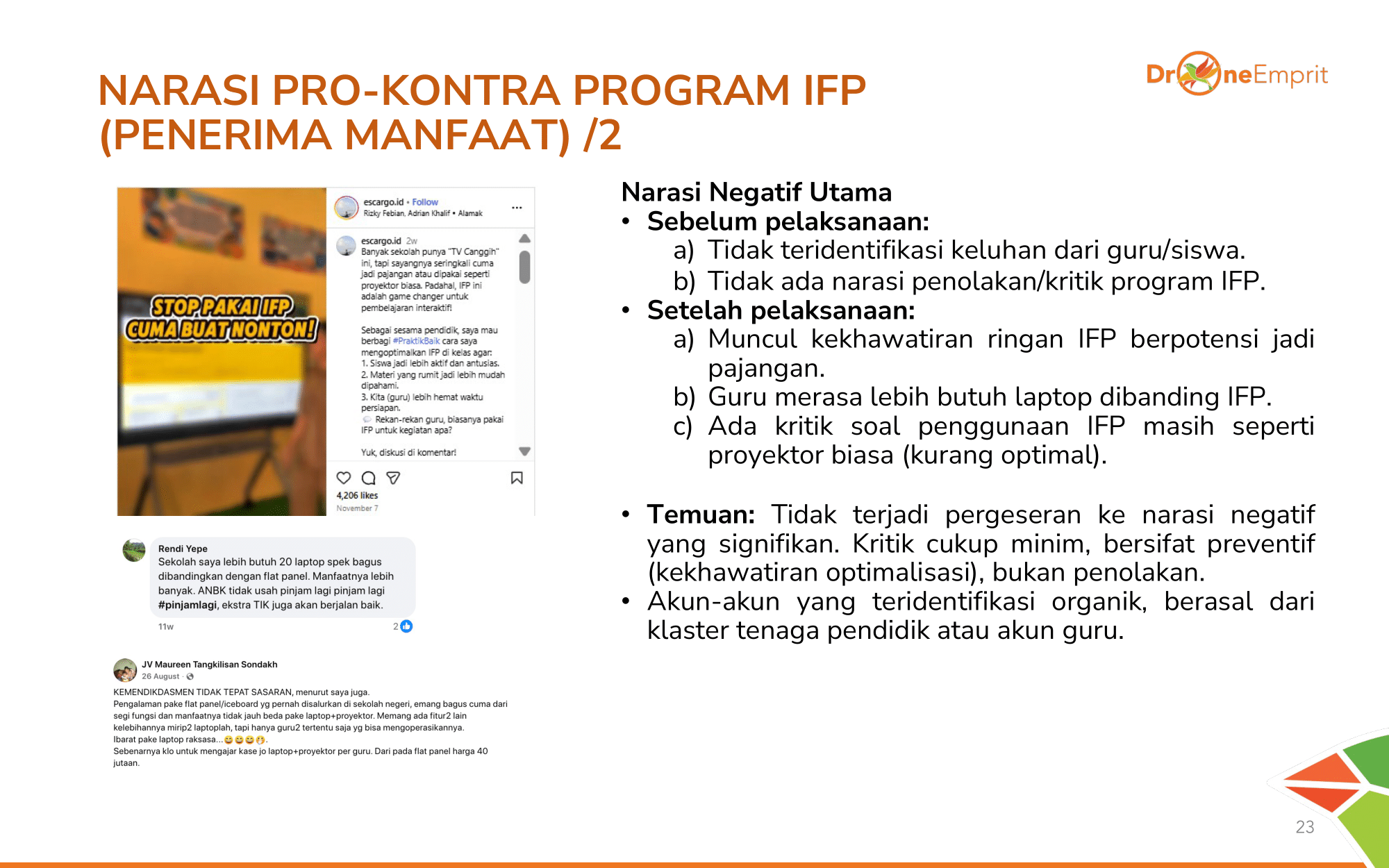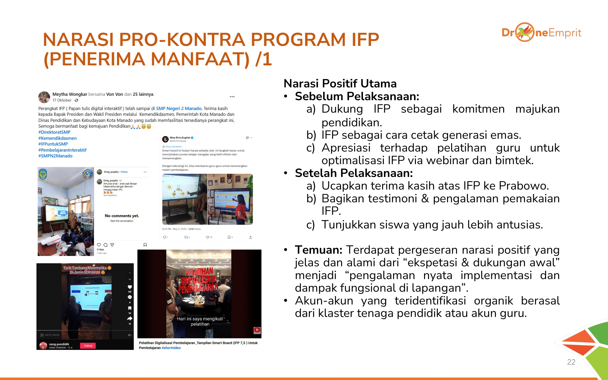 Guru & siswa (Penerima Manfaat) menunjukkan pergeseran narasi alami: dari sekadar dukung janji, menjadi testimoni pengalaman nyata yang seru di kelas. Akun-akun guru organik aktif membagikan momen ini.