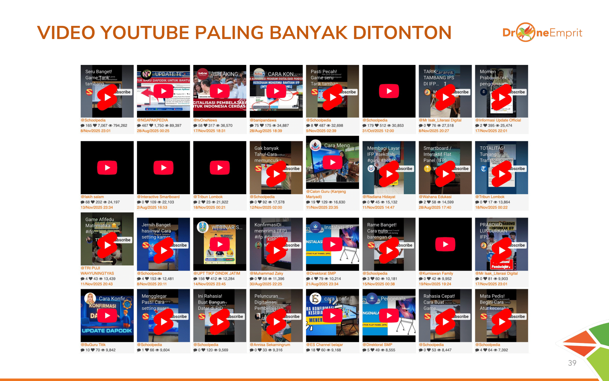 @Schoolpedia merajai YouTube dengan konten tutorial! Ini indikasi kuat bahwa guru/sekolah haus konten cara teknis pakai alat ini. Media berita mengekor di posisi berikutnya.
