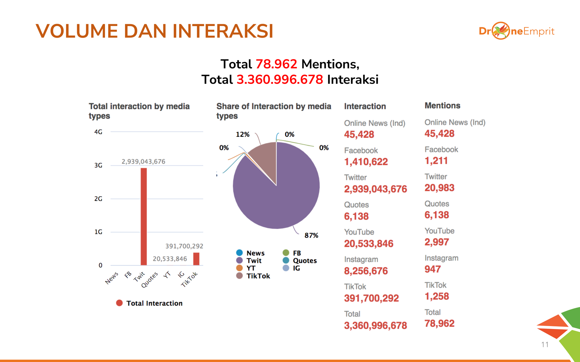 Isu ini menghasilkan total 78.962 sebutan dengan jangkauan interaksi masif yang menembus 3,3 miliar di berbagai platform digital.
