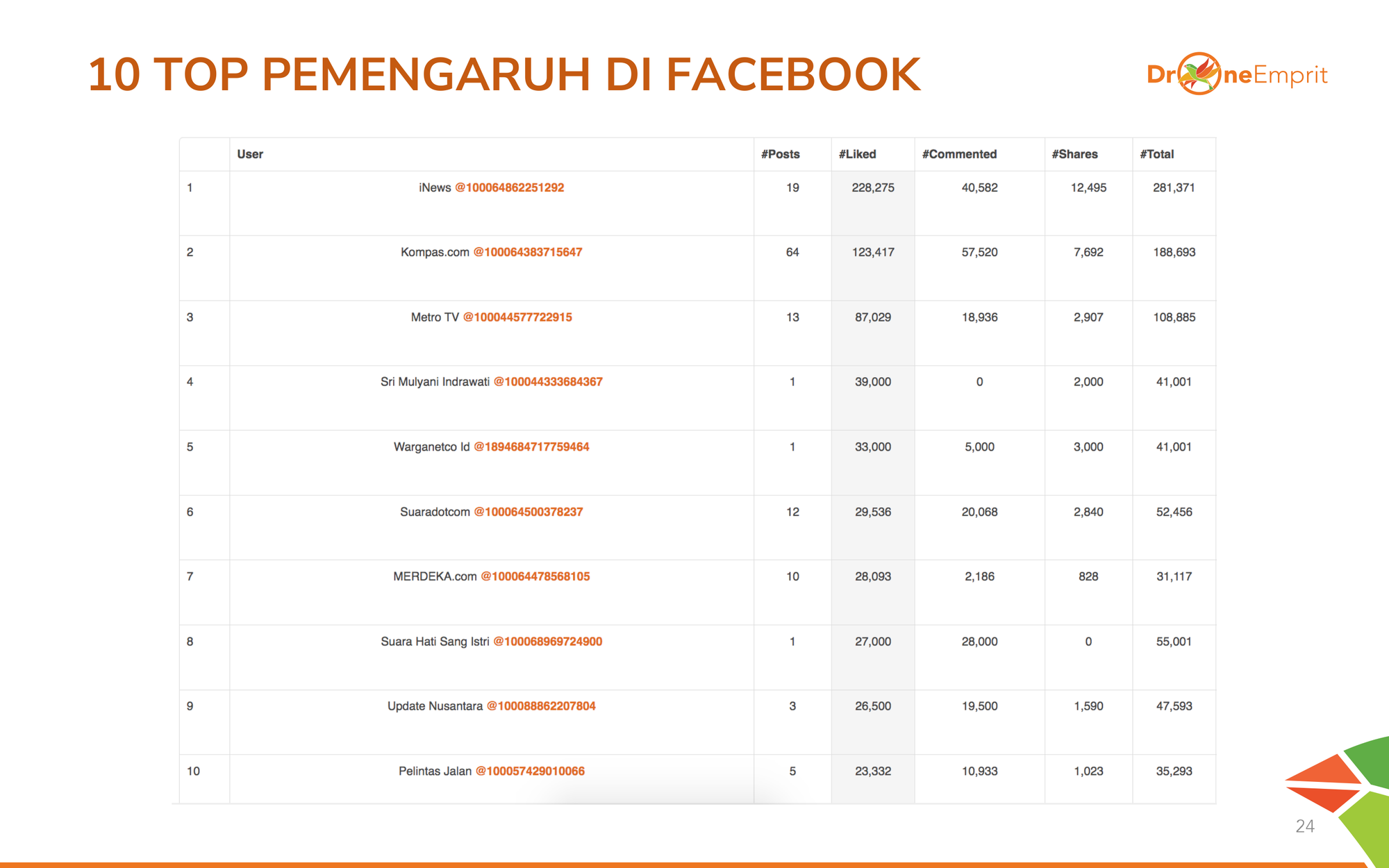 Bagaimana daftar pemengaruh di Facebook? Apakah polanya sama?