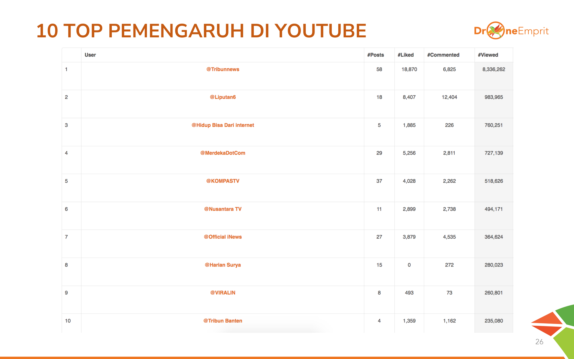 Di YouTube, kanal berita media besar seperti Tribunnews & Liputan6 menjadi pemengaruh teratas, menunjukkan dominasi format video berita dalam isu ini.