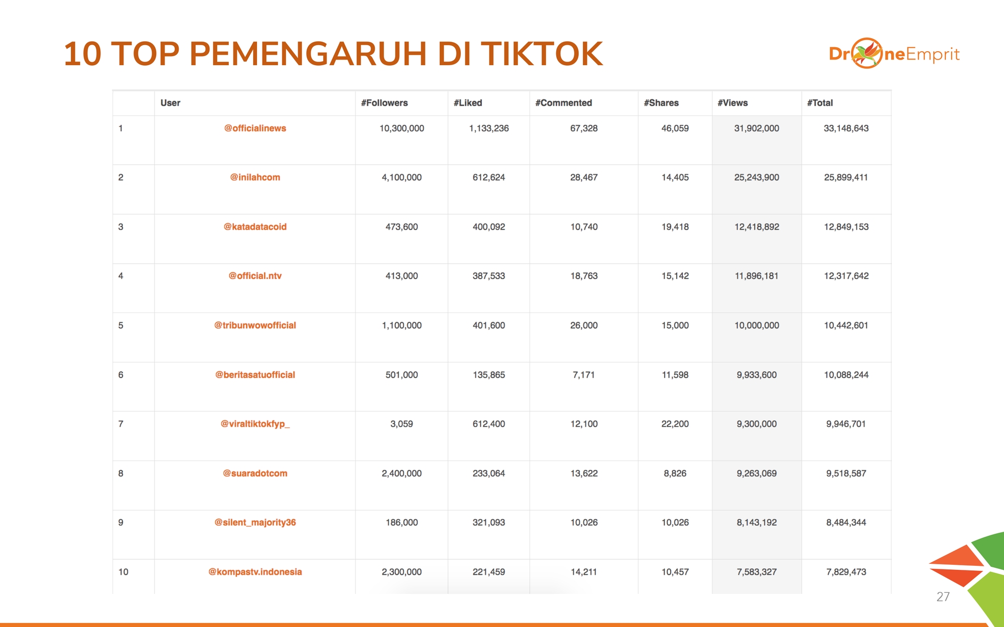 TikTok menampilkan gabungan akun media & kreator berita sebagai top pemengaruh.