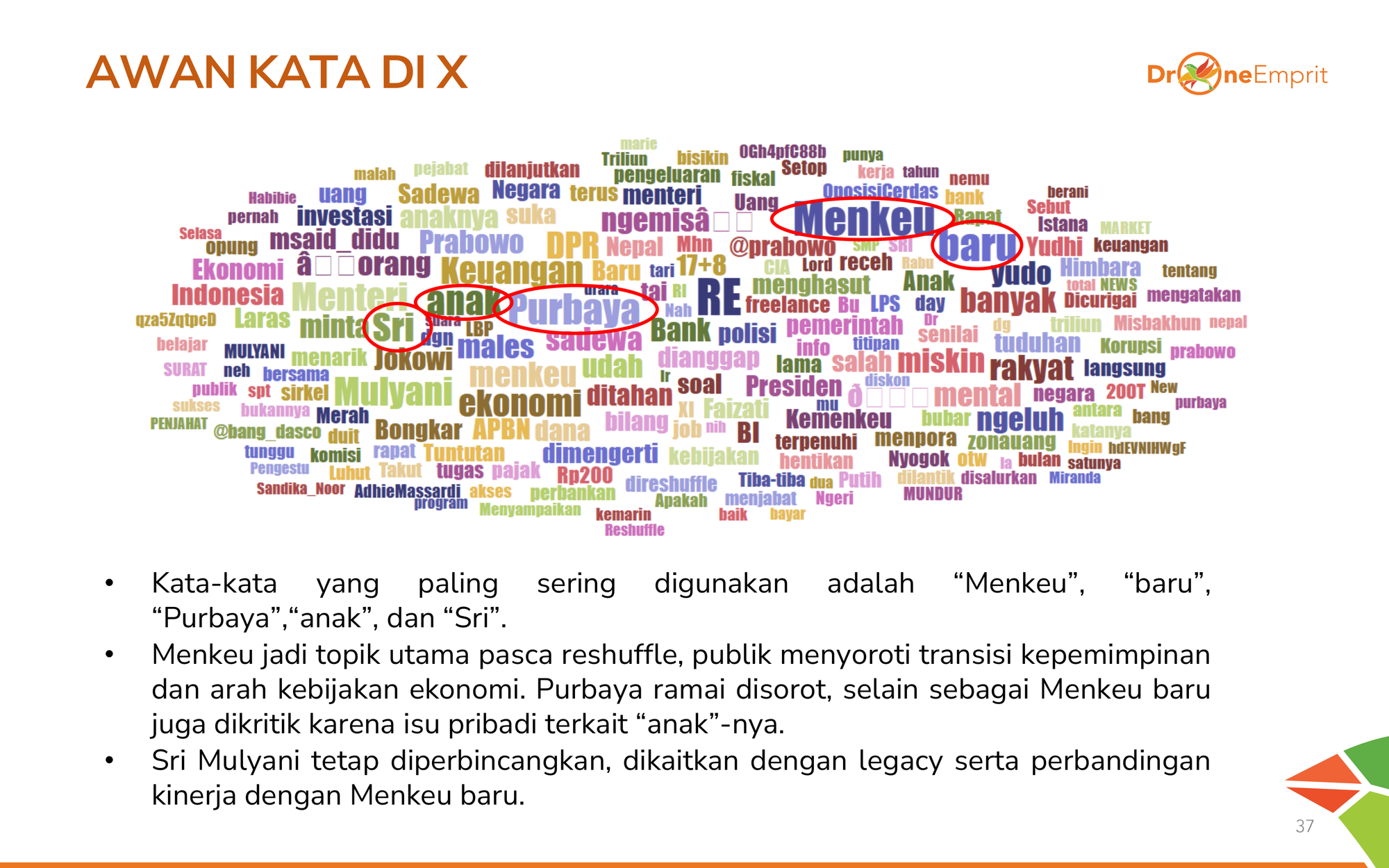 Daftar teratas X ditutup dengan kritik tajam pada gaya komunikasi Purbaya yang dinilai arogan & berisiko, serta unggahan informatif seputar reshuffle.