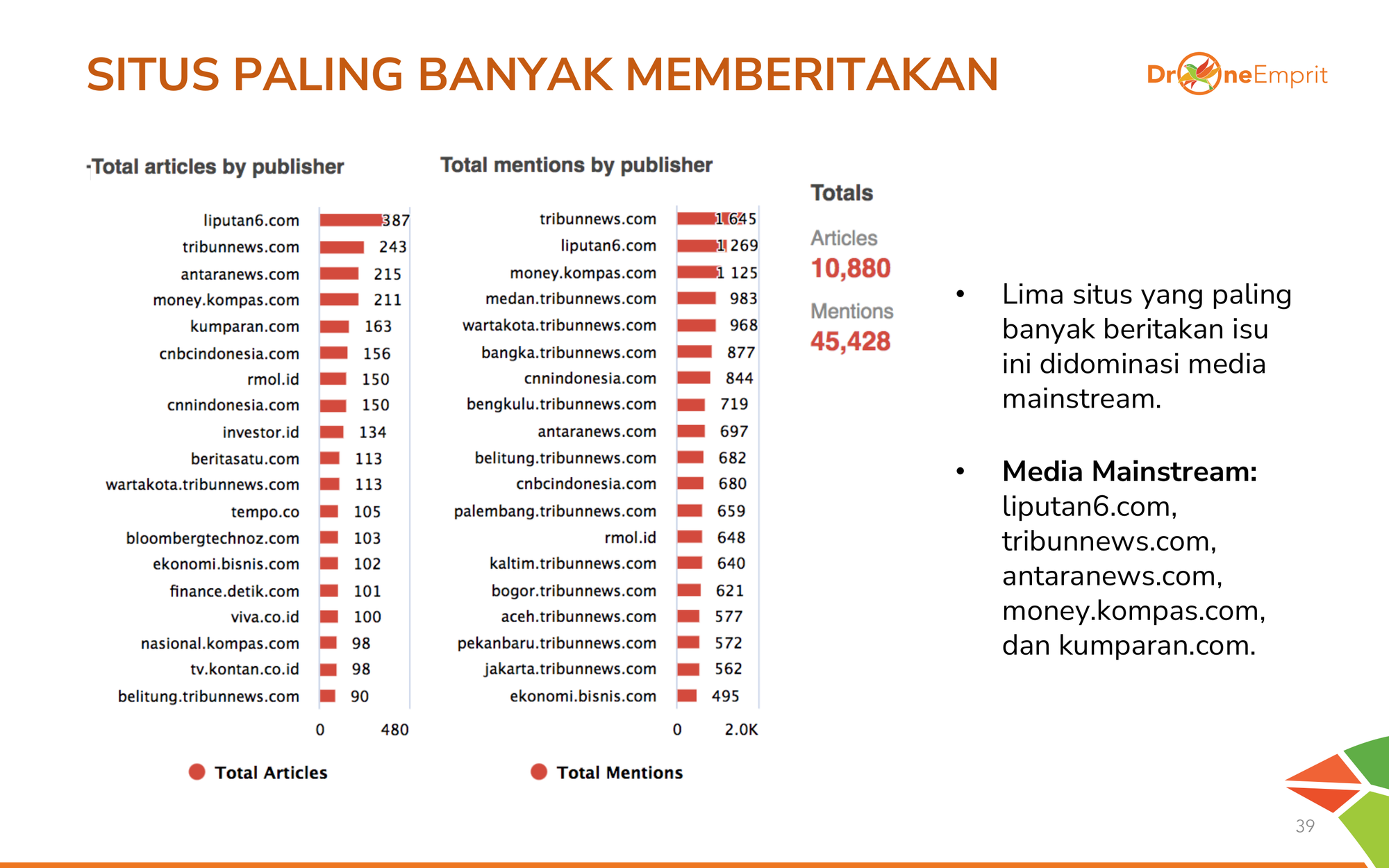 Lima situs yang paling banyak meliput isu ini seluruhnya adalah media arus utama, seperti liputan6.com, tribunnews.com, dan antaranews.com.