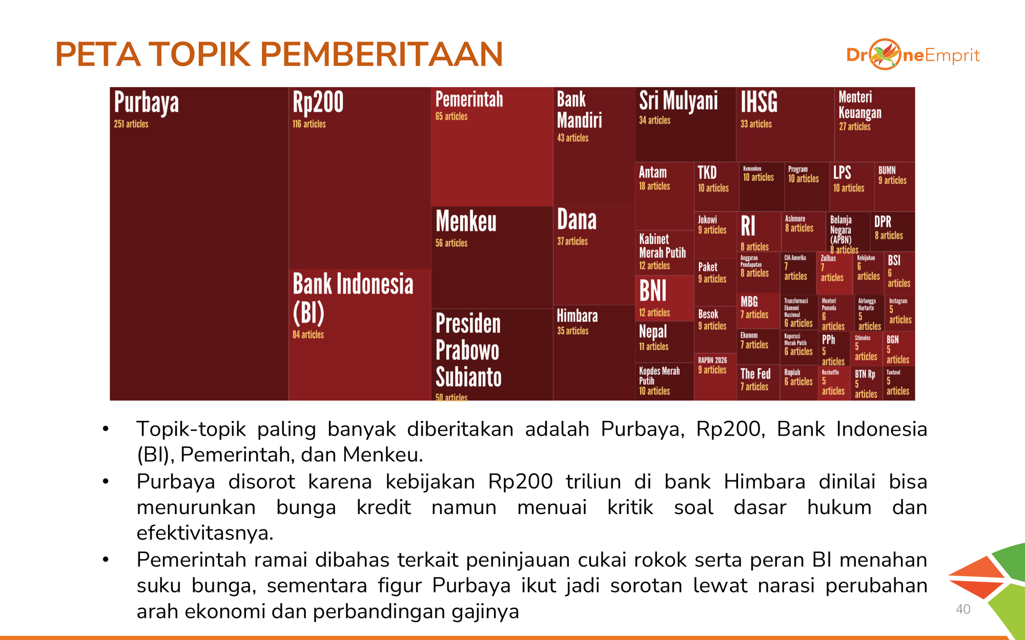 Pemberitaan media terfokus pada figur 'Purbaya' & kebijakannya soal dana 'Rp200' triliun di 'Bank Indonesia', serta peran 'Pemerintah' secara umum.