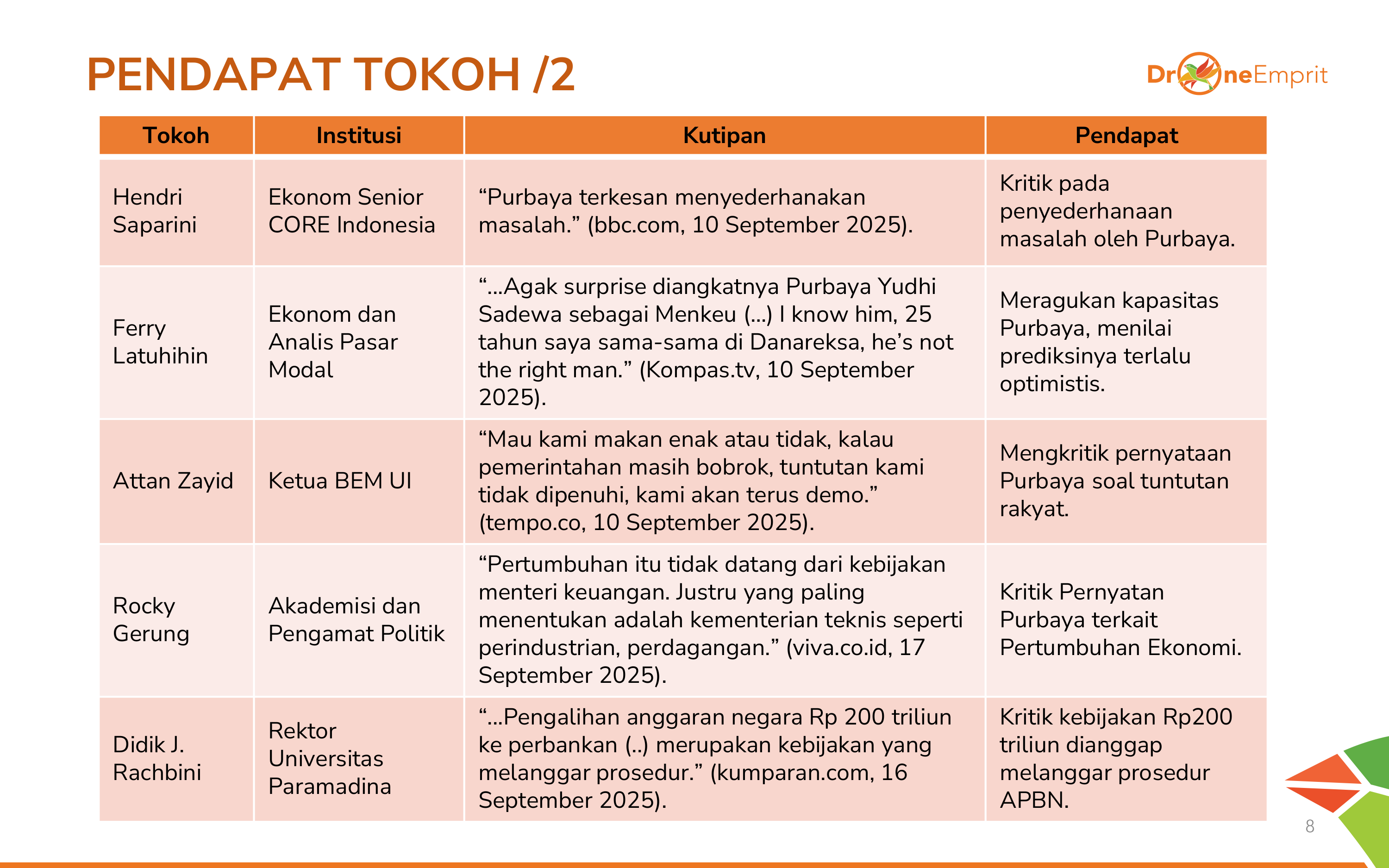 Pandangan kritis berdatangan: Purbaya dinilai menyederhanakan masalah, kapasitasnya diragukan, & kebijakannya dianggap melanggar prosedur.