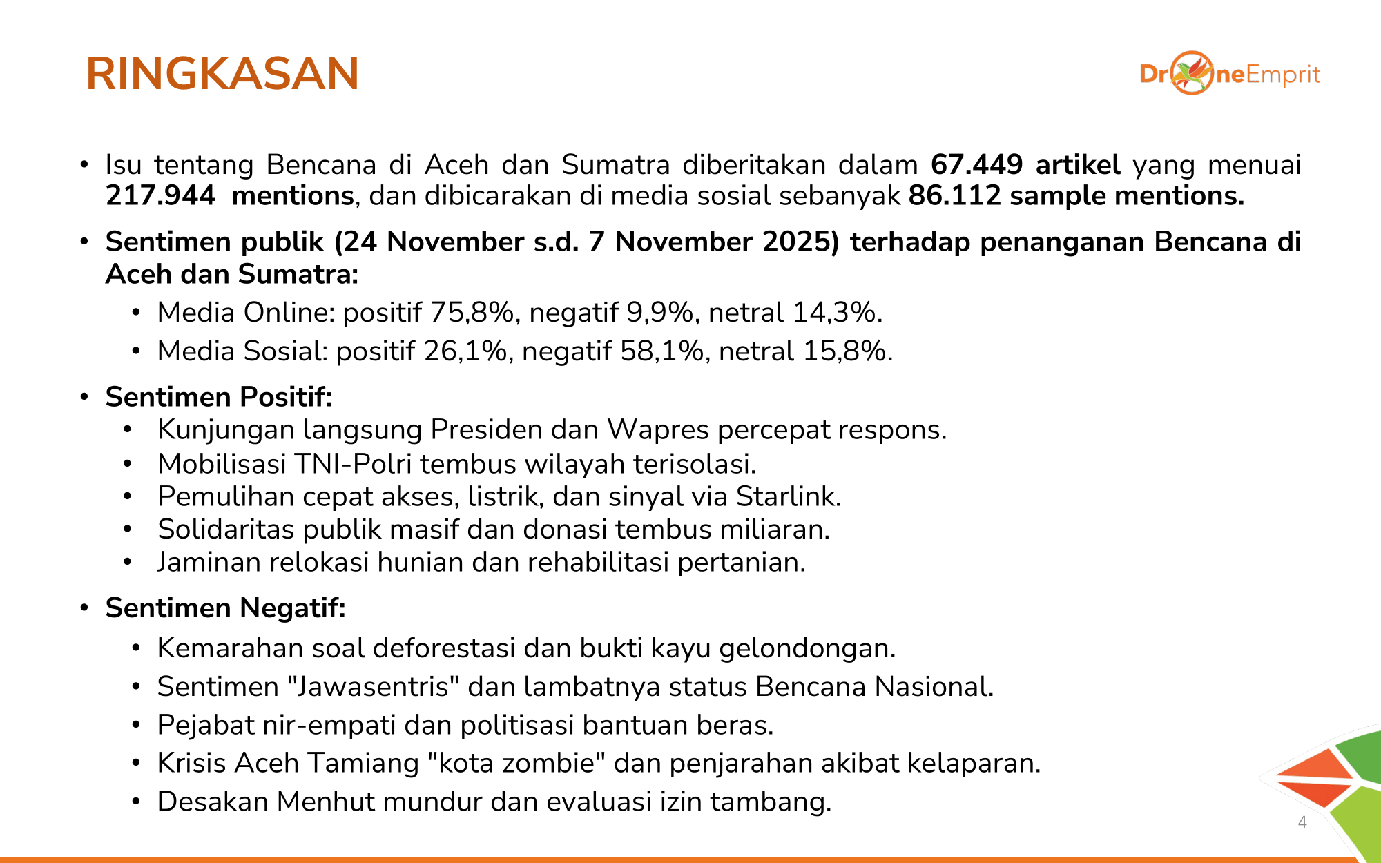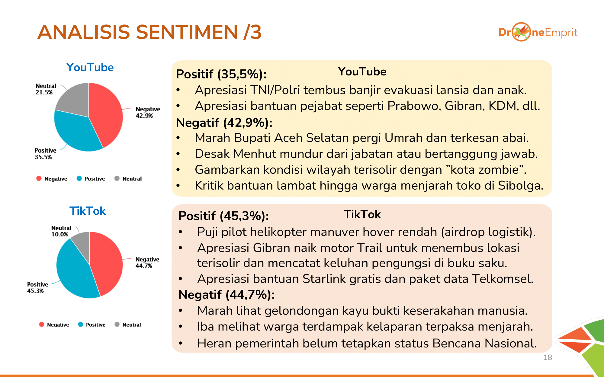 Update Sentimen Publik terhadap Penanganan Bencana di Aceh dan Sumatra