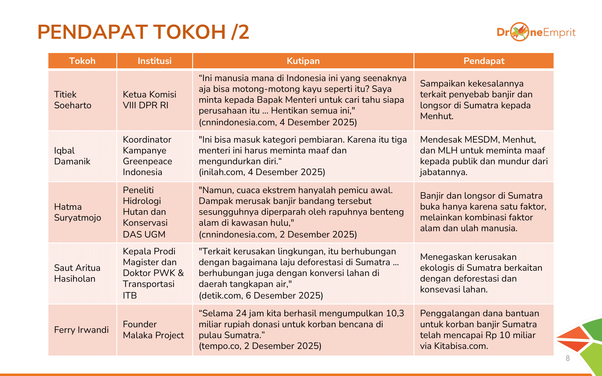 Kritik tajam mengalir dari DPR hingga aktivis lingkungan yang menuntut Menhut mundur soal deforestasi. Di sisi lain, influencer seperti Ferry Irwandi buktikan kekuatan "people power" lewat donasi publik yang tembus miliaran.