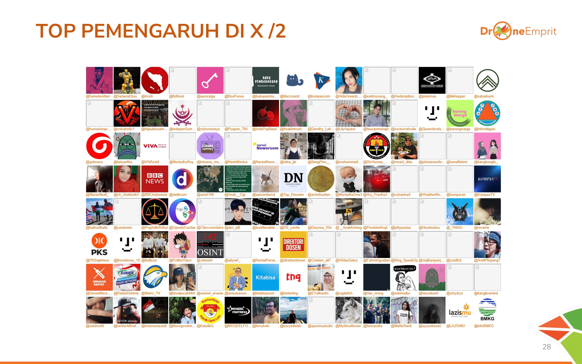 Peta visual ini menunjukkan betapa beragamnya aktor di X. Dari akun "anonim" kritis, aktivis lingkungan, hingga komunitas regional bersatu. Mereka membentuk jejaring informasi alternatif yang seringkali lebih cepat dari kanal resmi.