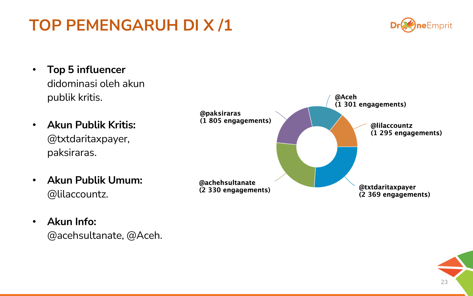 Di platform X, "micro-phone" percakapan dipegang kuat oleh akun publik kritis seperti @txtdaritaxpayer & @paksiraras yang vokal kawal anggaran. Akun info lokal seperti @Aceh juga berperan vital.