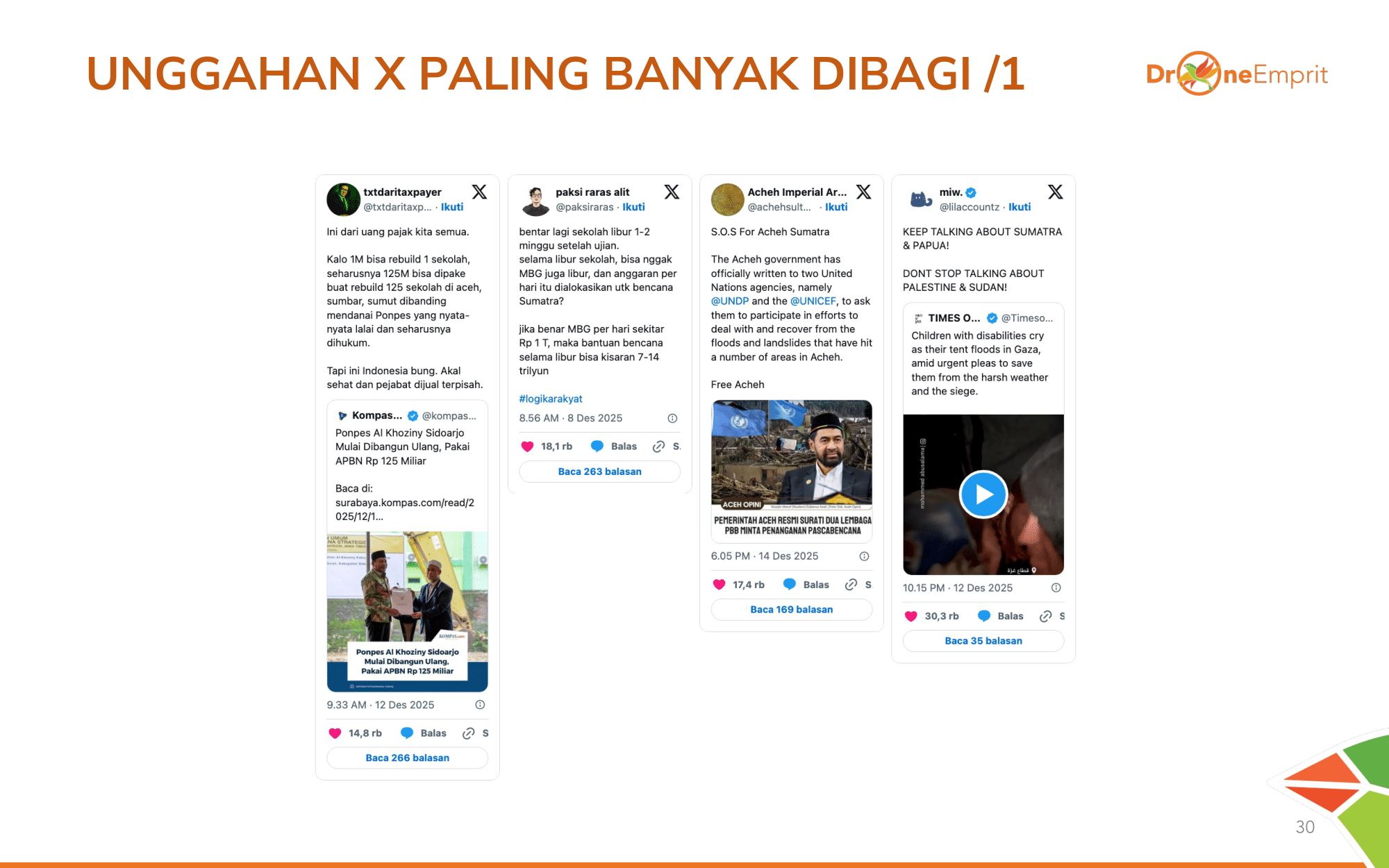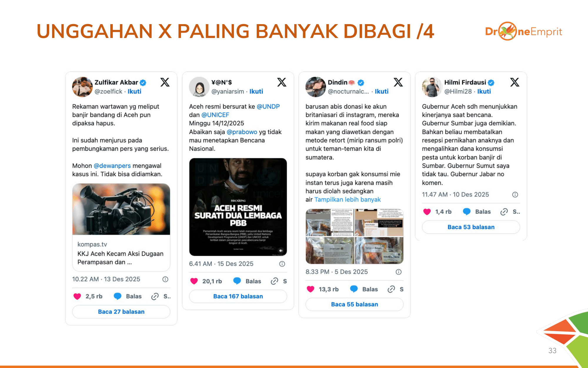 Unggahan ketiga yang paling banyak dibagikan ini menutup rangkaian bukti betapa tingginya atensi publik & desakan netizen terhadap isu kemanusiaan di Aceh & Sumatra.