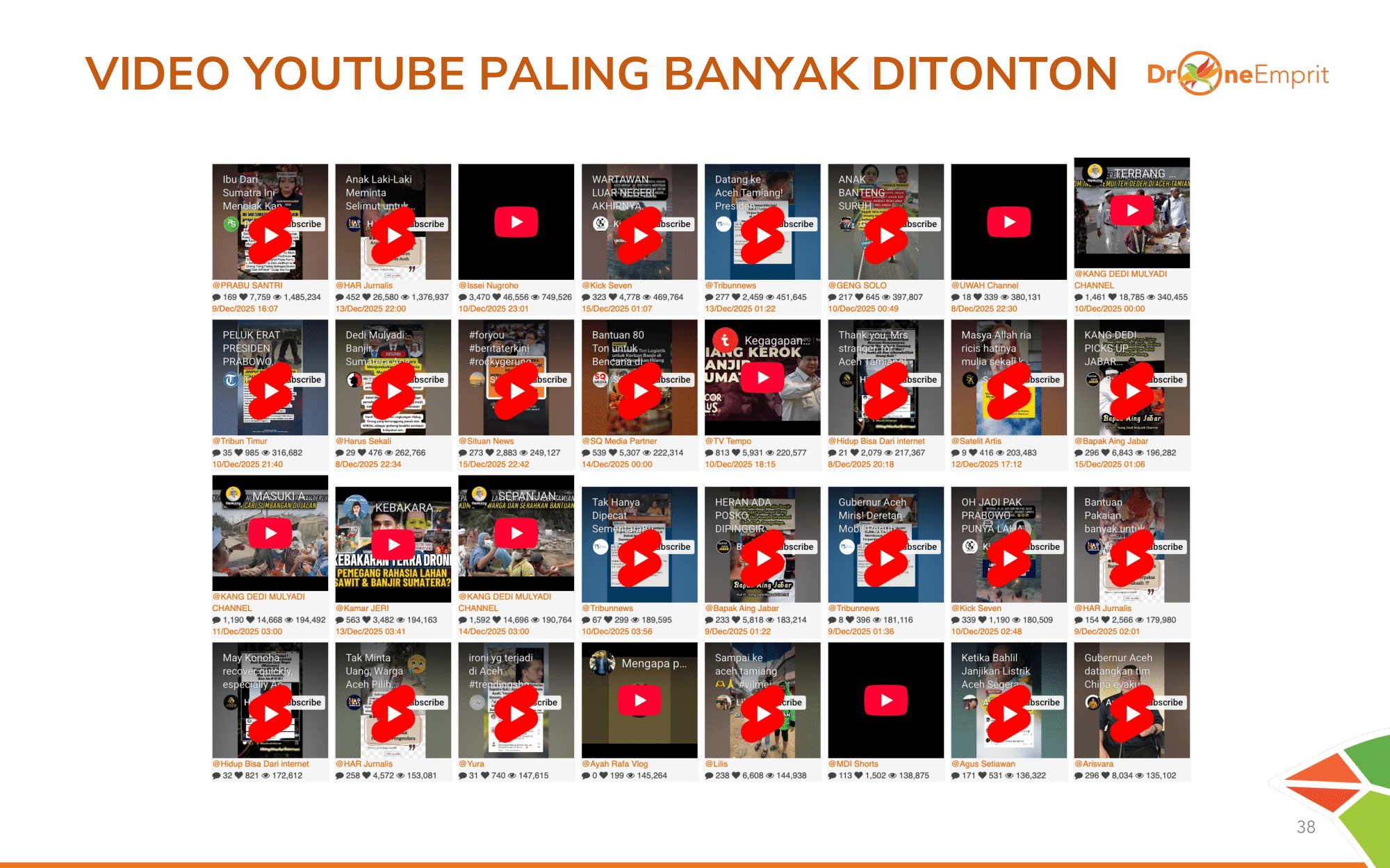 Tribunnews memimpin di YouTube, disusul jurnalis independen & konten kreator lokal yang menayangkan visual langsung dari lokasi bencana, memberikan gambaran nyata kondisi di lapangan.