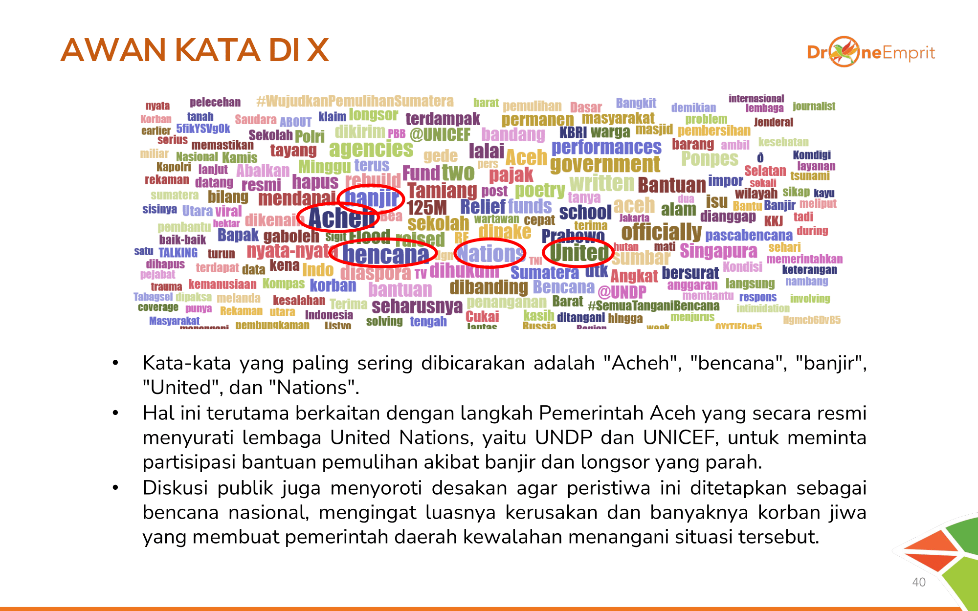 Kata "United Nations", "UNDP", & "UNICEF" mencuat tajam. Ini sinyal kuat dukungan publik pada langkah Aceh meminta bantuan asing, sekaligus bentuk protes keras atas penolakan status Bencana Nasional.